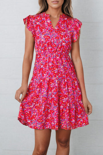 Pattern type: Floral Style: Chic Features: Ruffle Neckline: Notched Length: Mini Sleeve length: Cap sleeves...