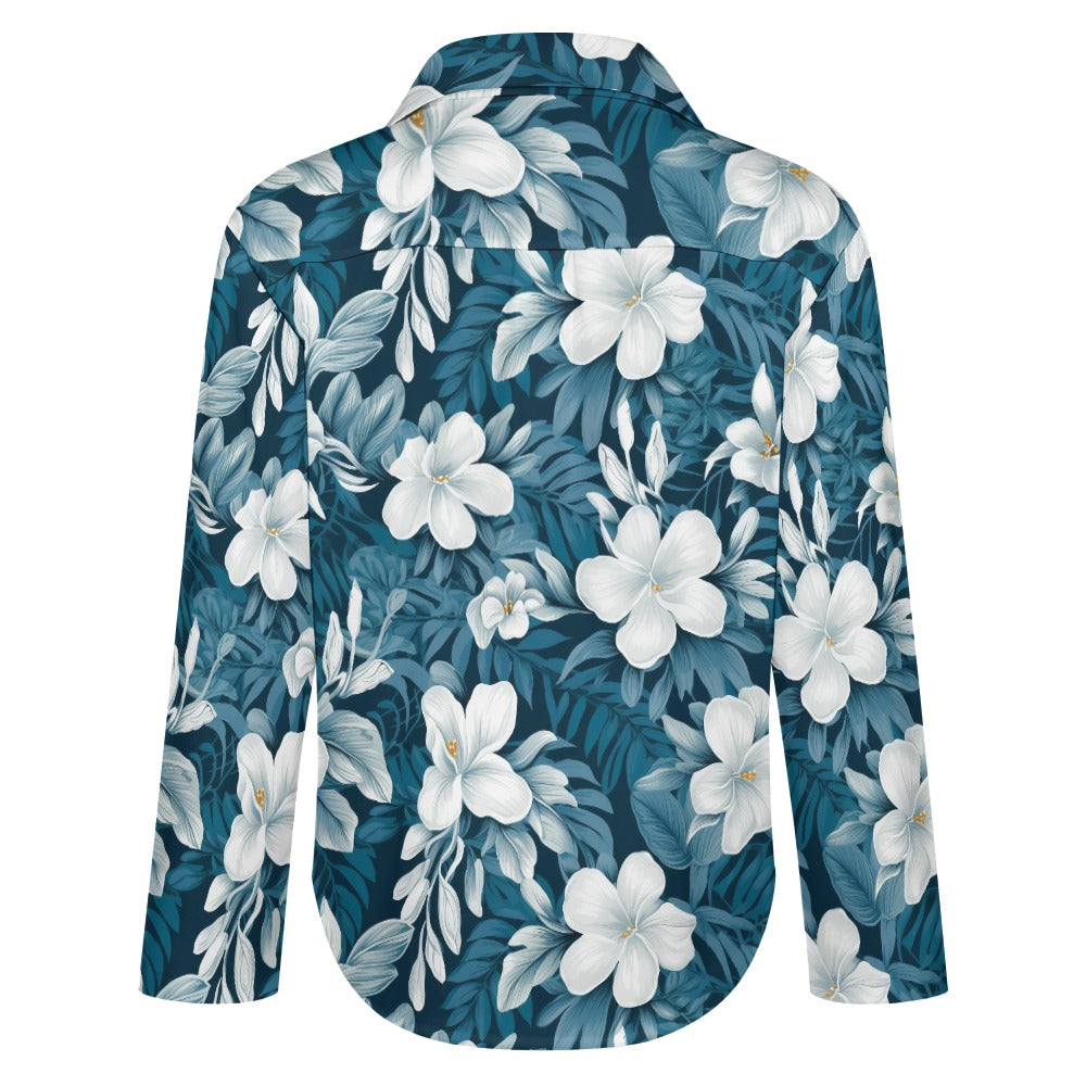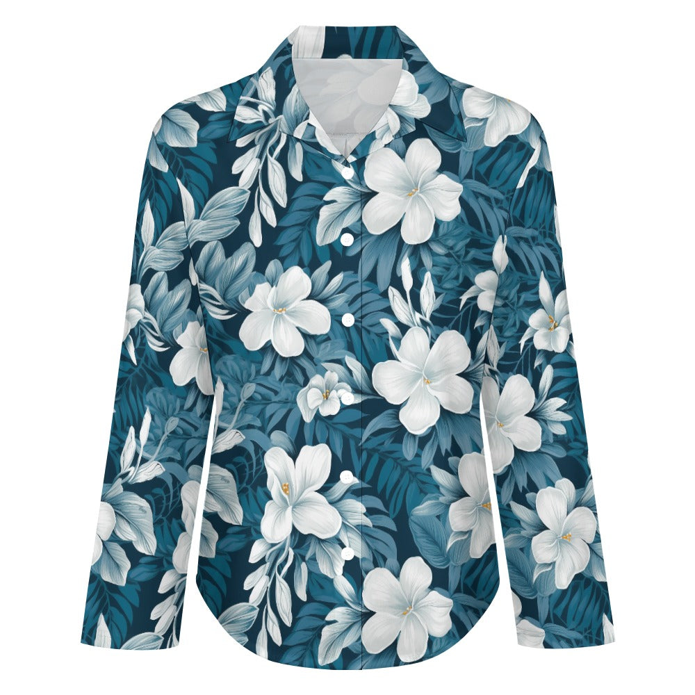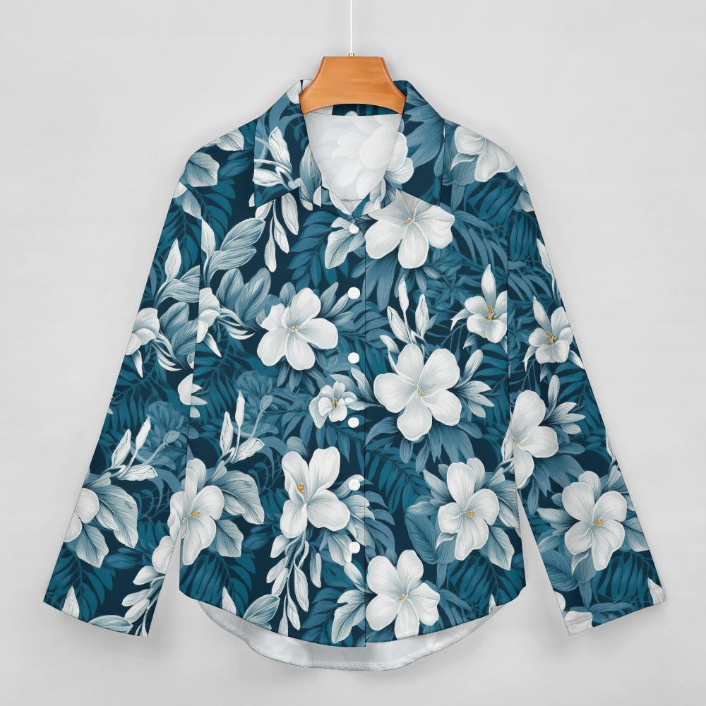 Blue/Green & White Hibiscus Women's Hawaiian Shirt
