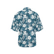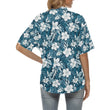 Blue/Green & White Hibiscus Hawaiian Shirt for Women