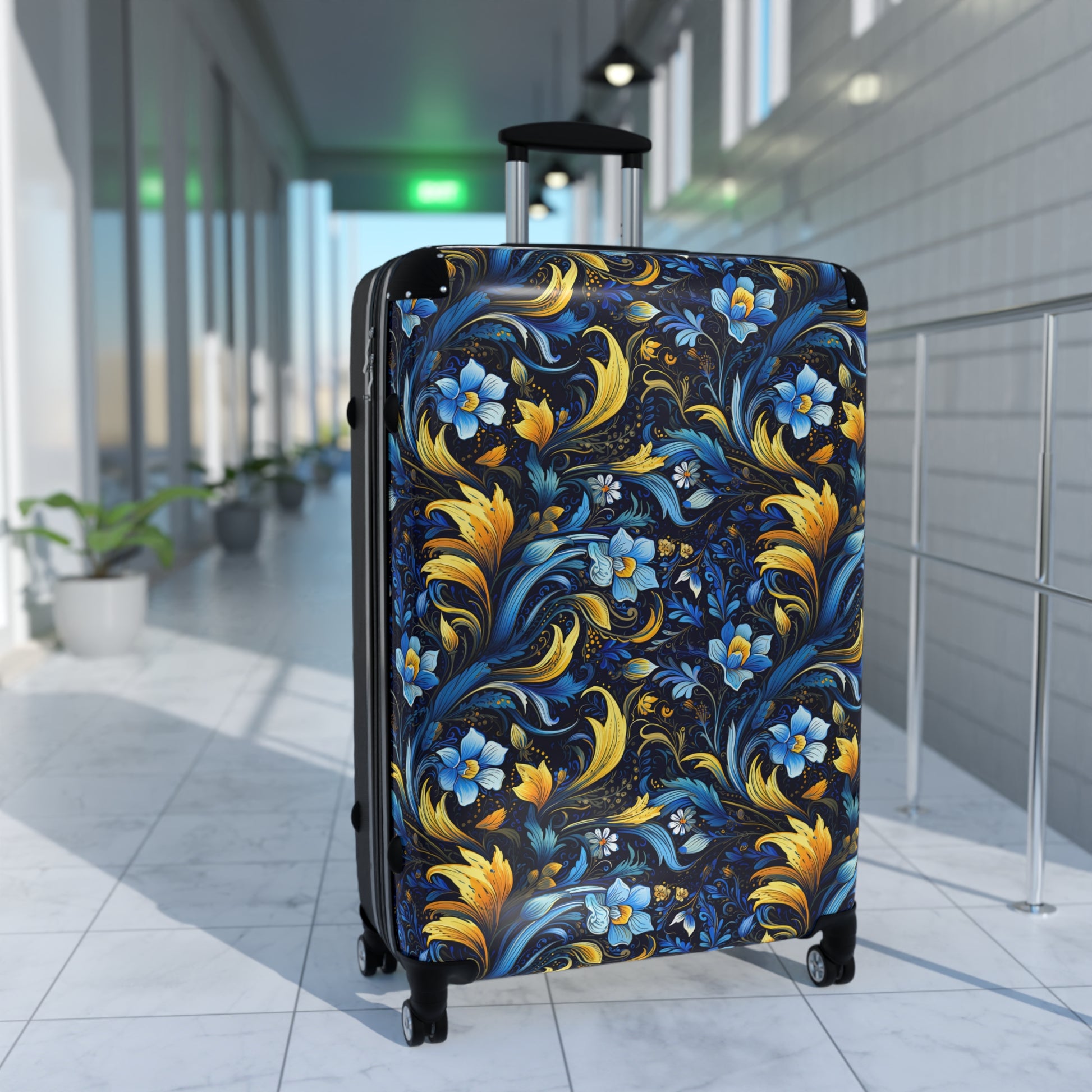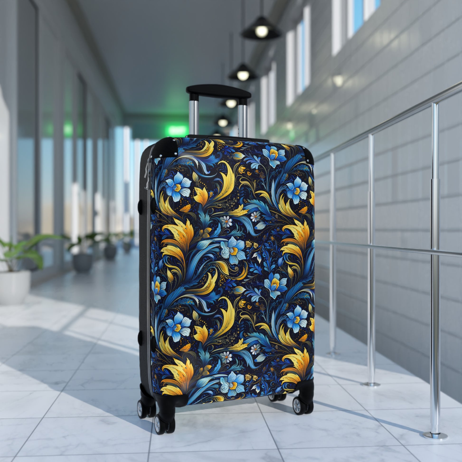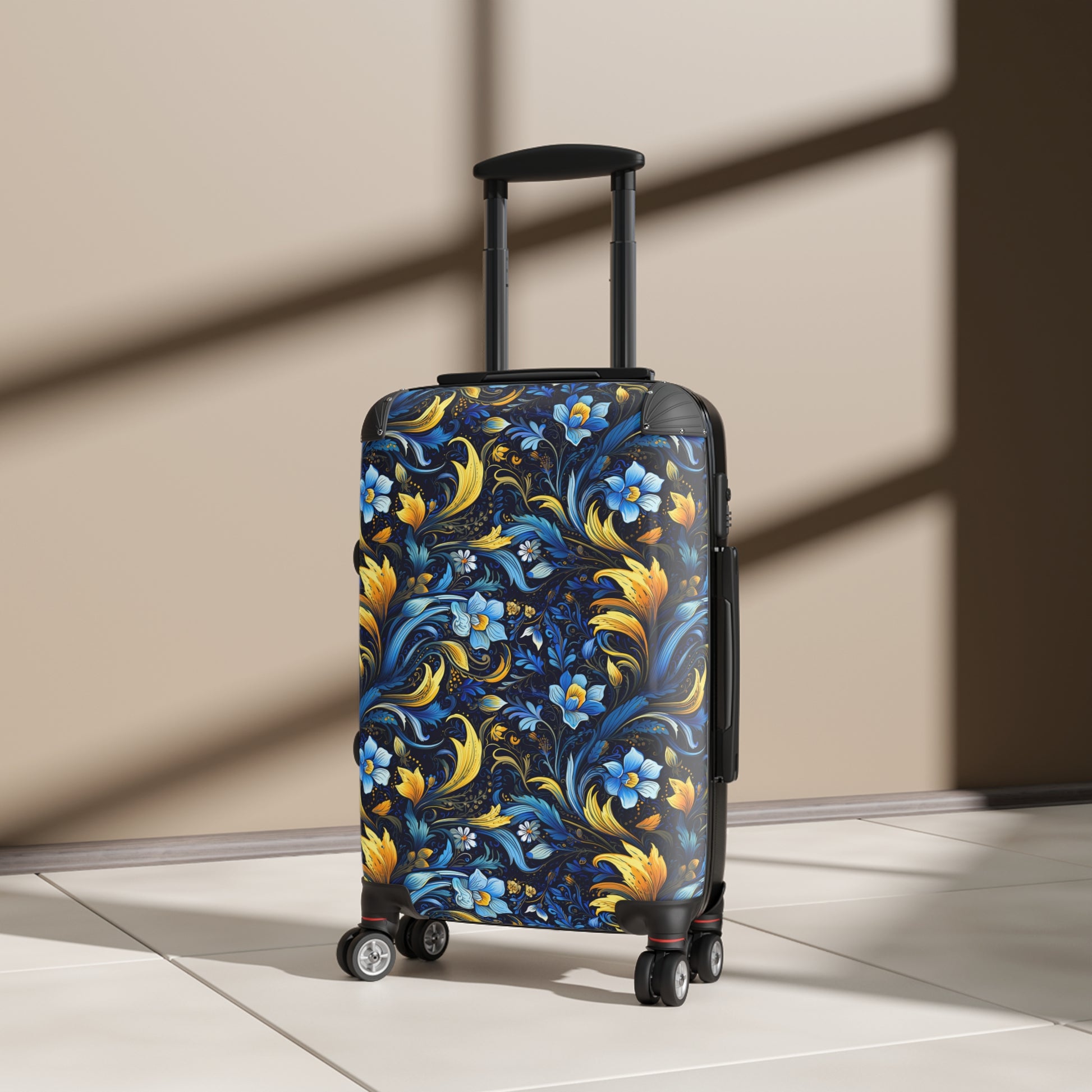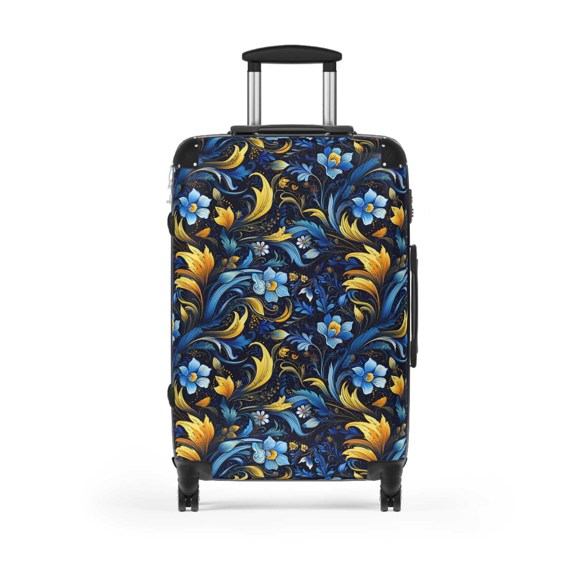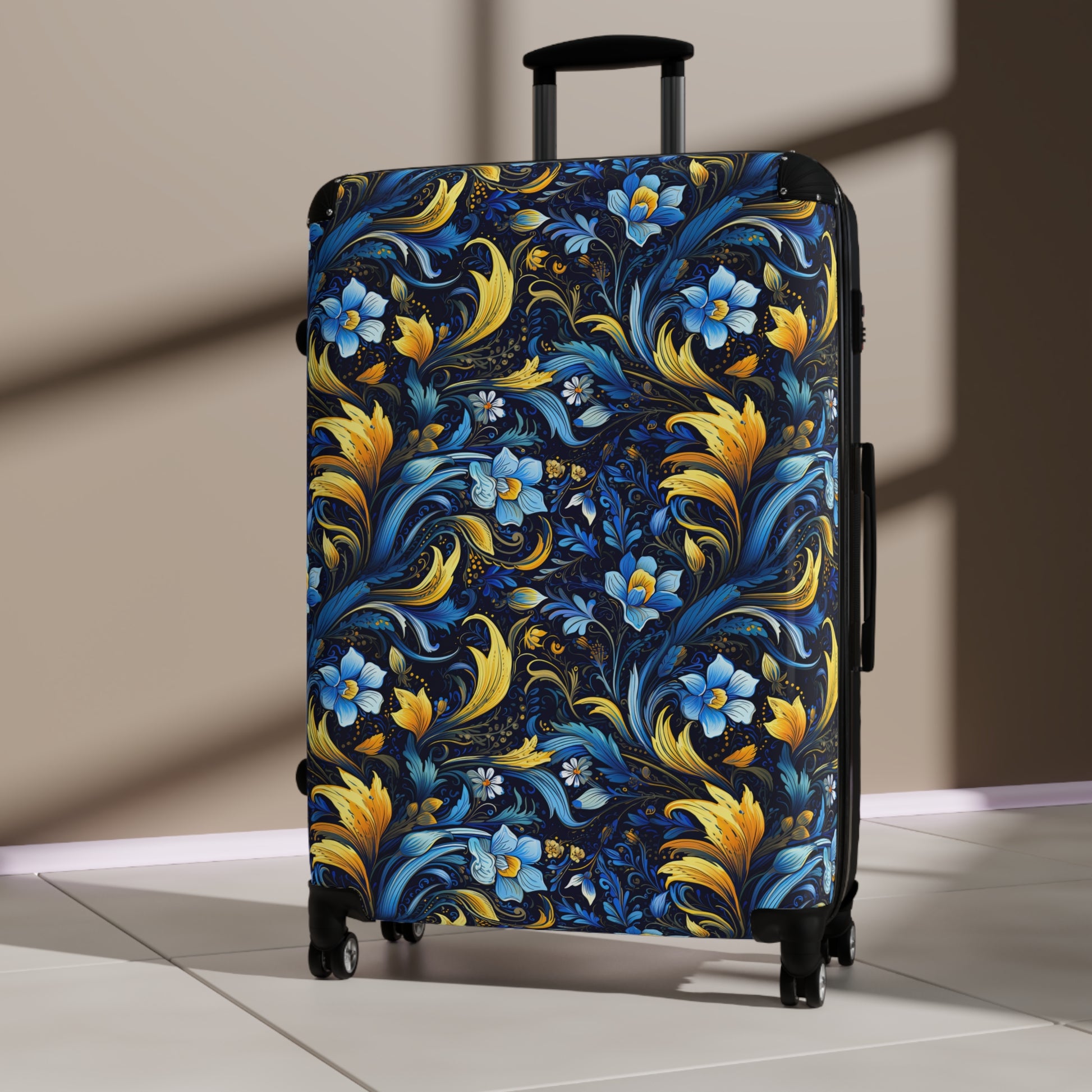 Traveling is best done in style, and suitcases help anyone do exactly that. This unique, blue & yellow paisley design will ensure you can easily find your luggage and stand out while on travel or vacation. Available in multiple sizes to accommodate your needs, this Blue & Yellow Paisley Suitcase from Sunshine on the Seas comes with an adjustable handle, 360 degree swivel wheels, a safety lock, and an adjustable handle for carefree movement through airports and cities.