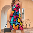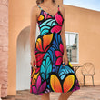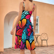 Colorful Plumeria Long Suspender Dress