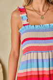 Contrast Stripe Wide Strap Smocked Tiered Dress