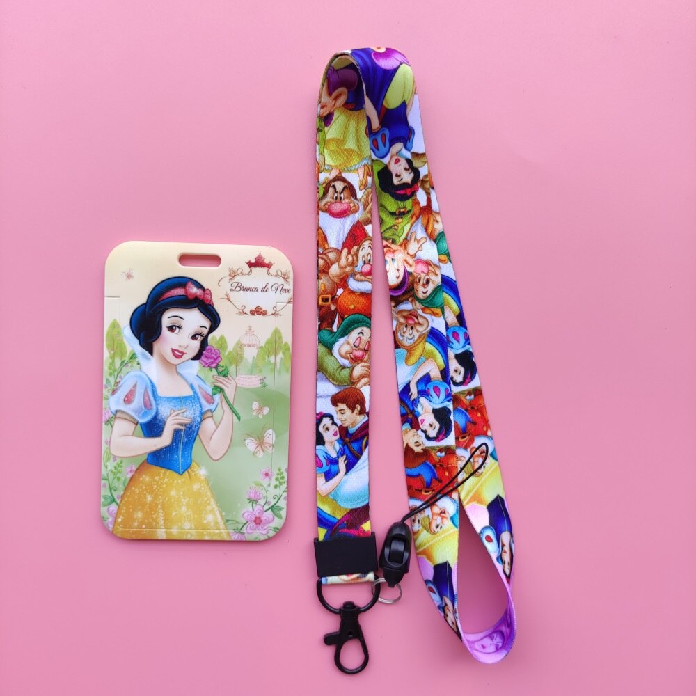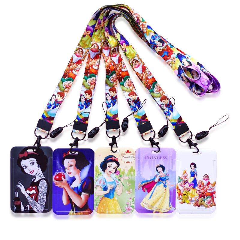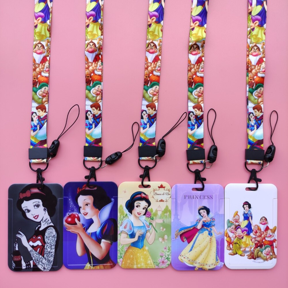 Disney Princess Snow White Card Holders Lanyards Cartoon Women Card Case ID Badge Holder Girl Credit Cardholder Retractable Clip