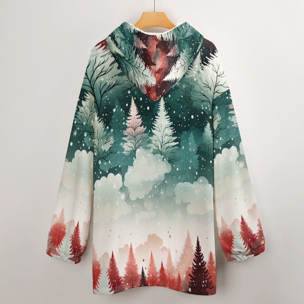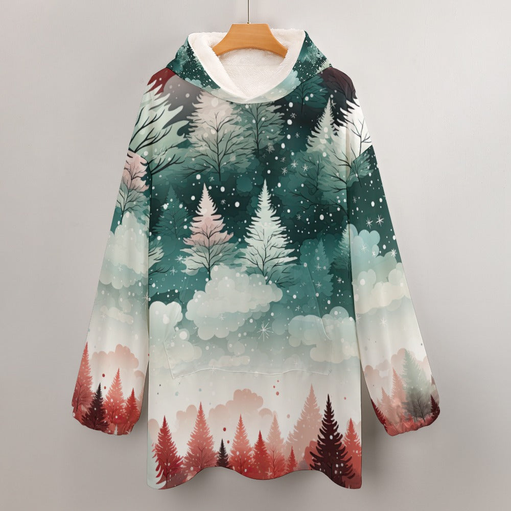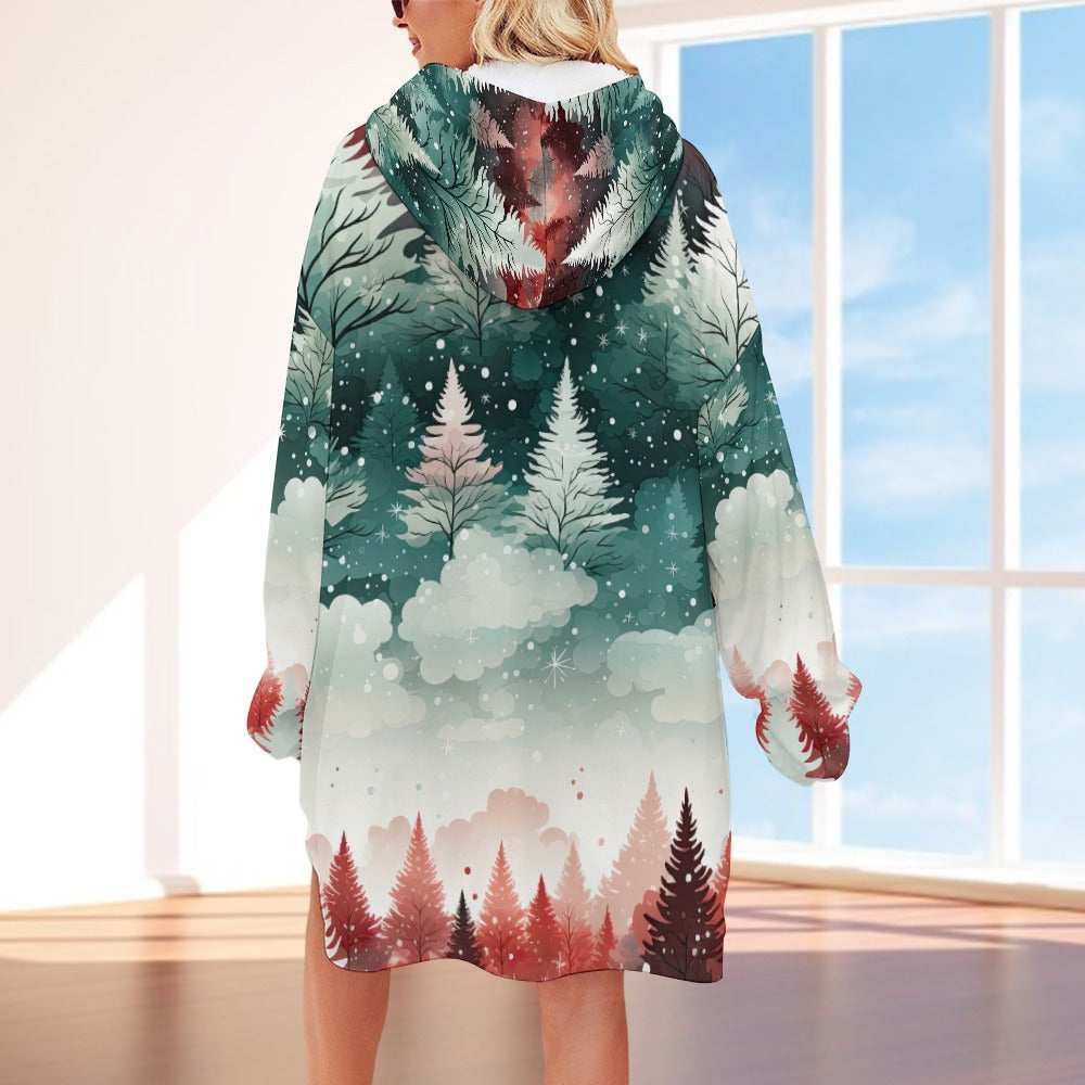 Get ready to snuggle up and dream of a White Christmas with our holiday-themed hooded blanket. This cozy blanket features a festive red and green tree design, complete with snowflakes and a snowy landscape. The hood is designed to resemble a snow-covered tree, adding an extra touch of holiday cheer to your lounging experience.