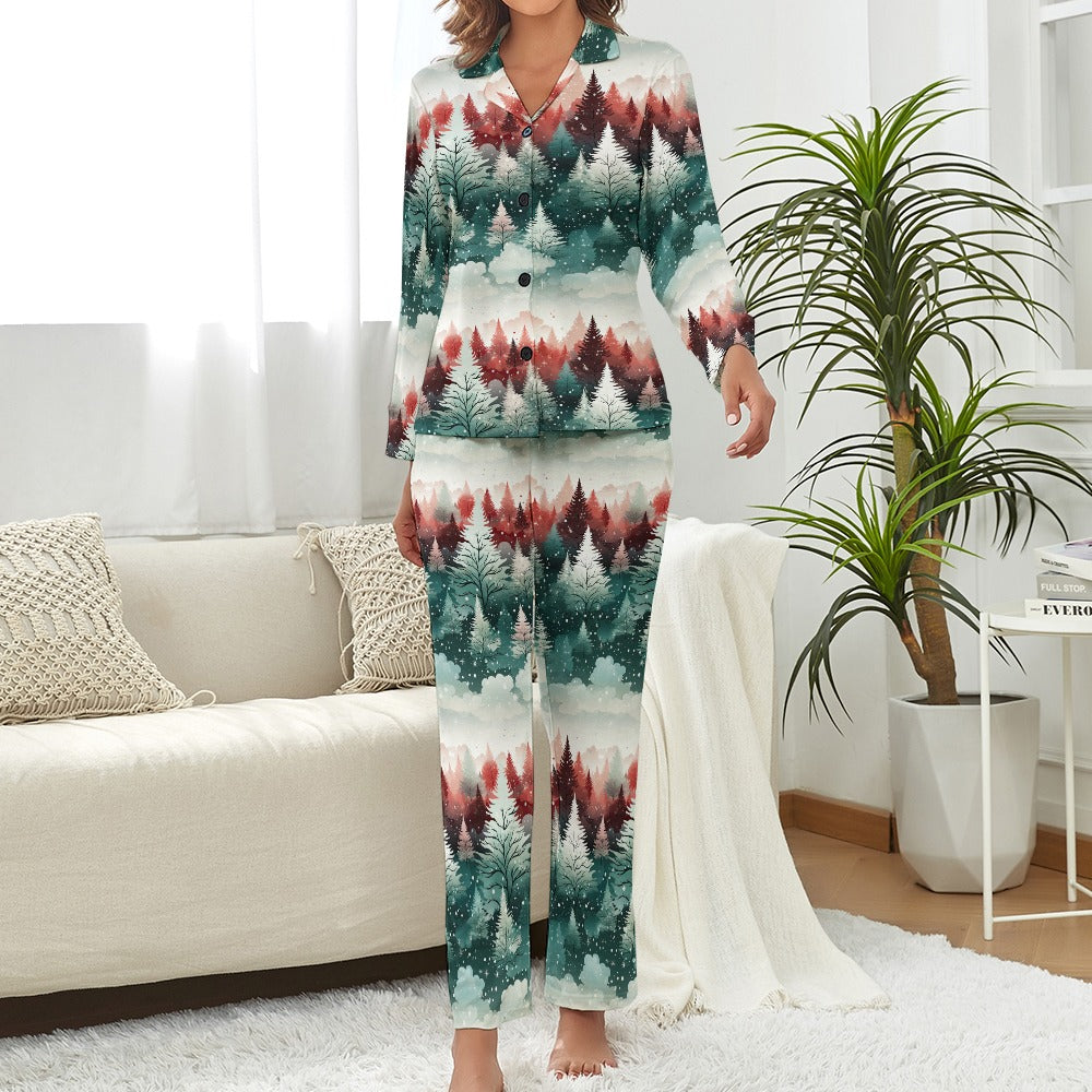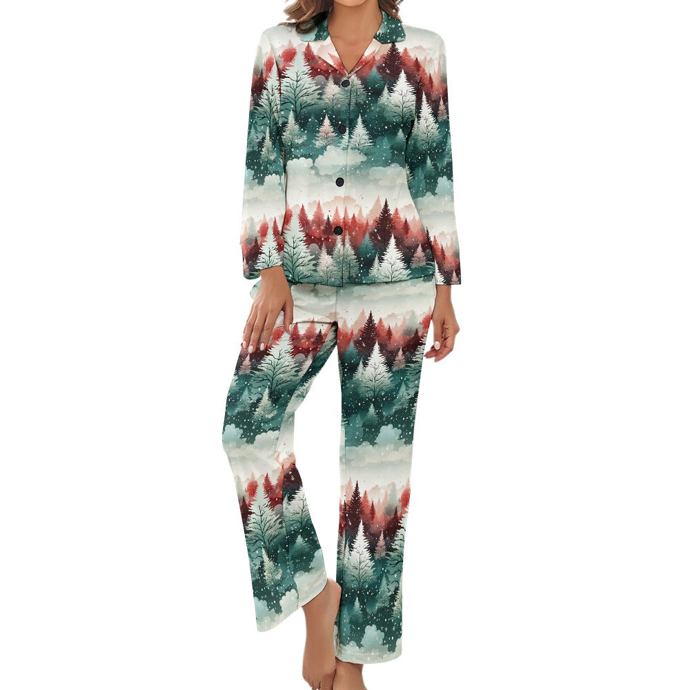 Made from ultra-soft and breathable fabric, our White Christmas pajamas ensure maximum comfort throughout the night. The cozy long-sleeved tops are adorned with charming Christmas trees, each covered with glistening snow. The pants also feature a delightful snowflake print, adding a touch of winter wonderland to your family's festive attire. With a relaxed fit and elastic waistband, these pajamas offer a snug and flexible fit for every family member, from the littlest elves to the jolliest of Santas.