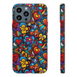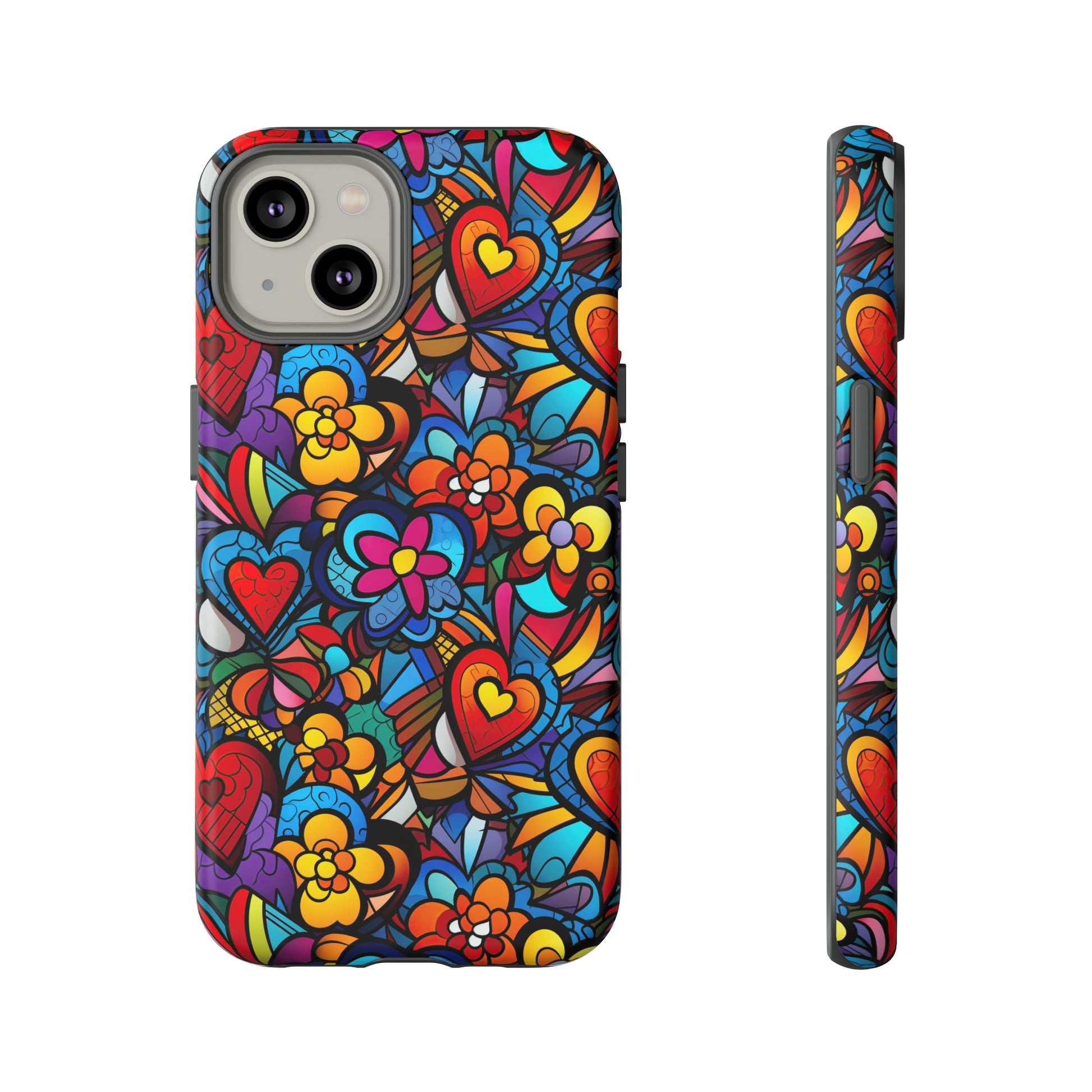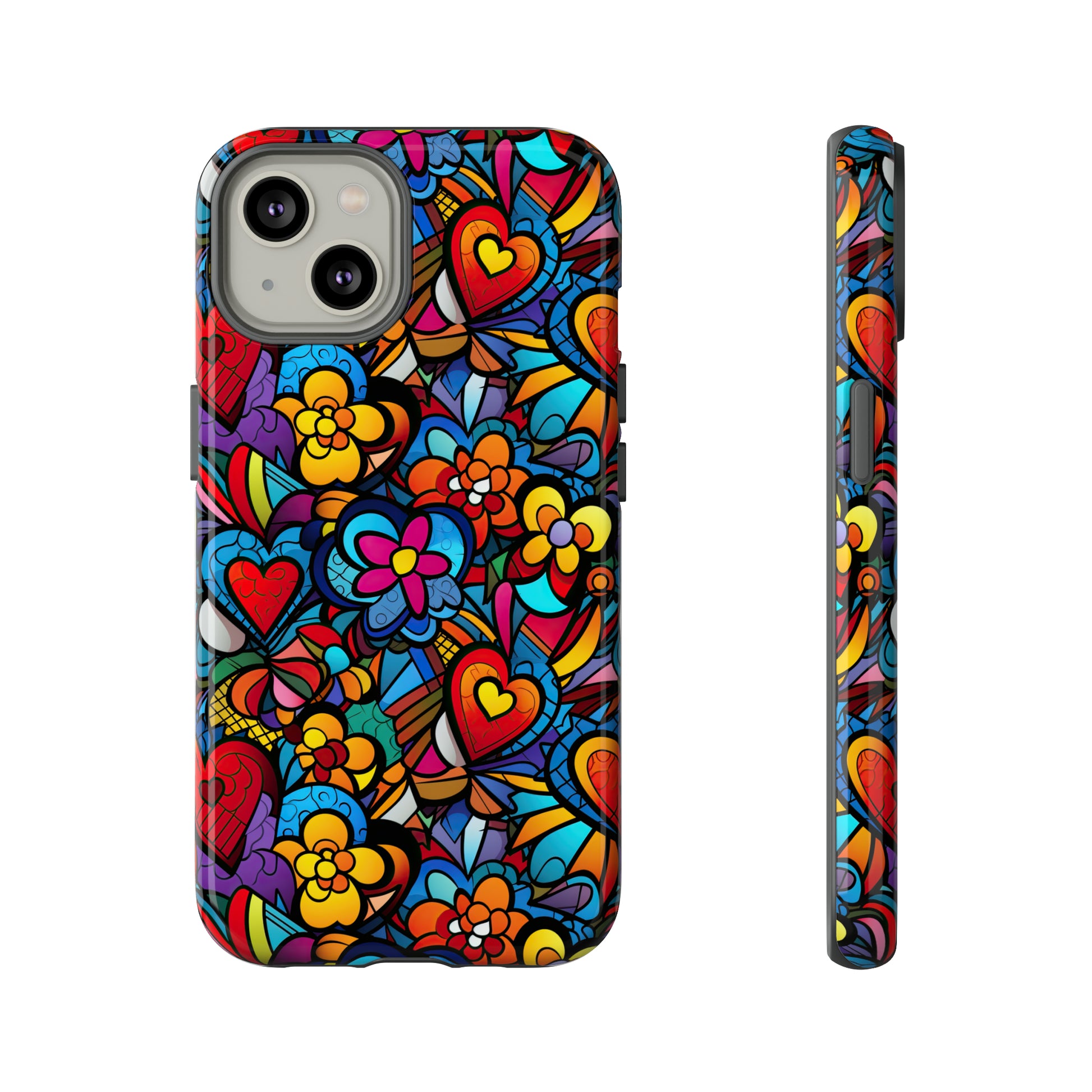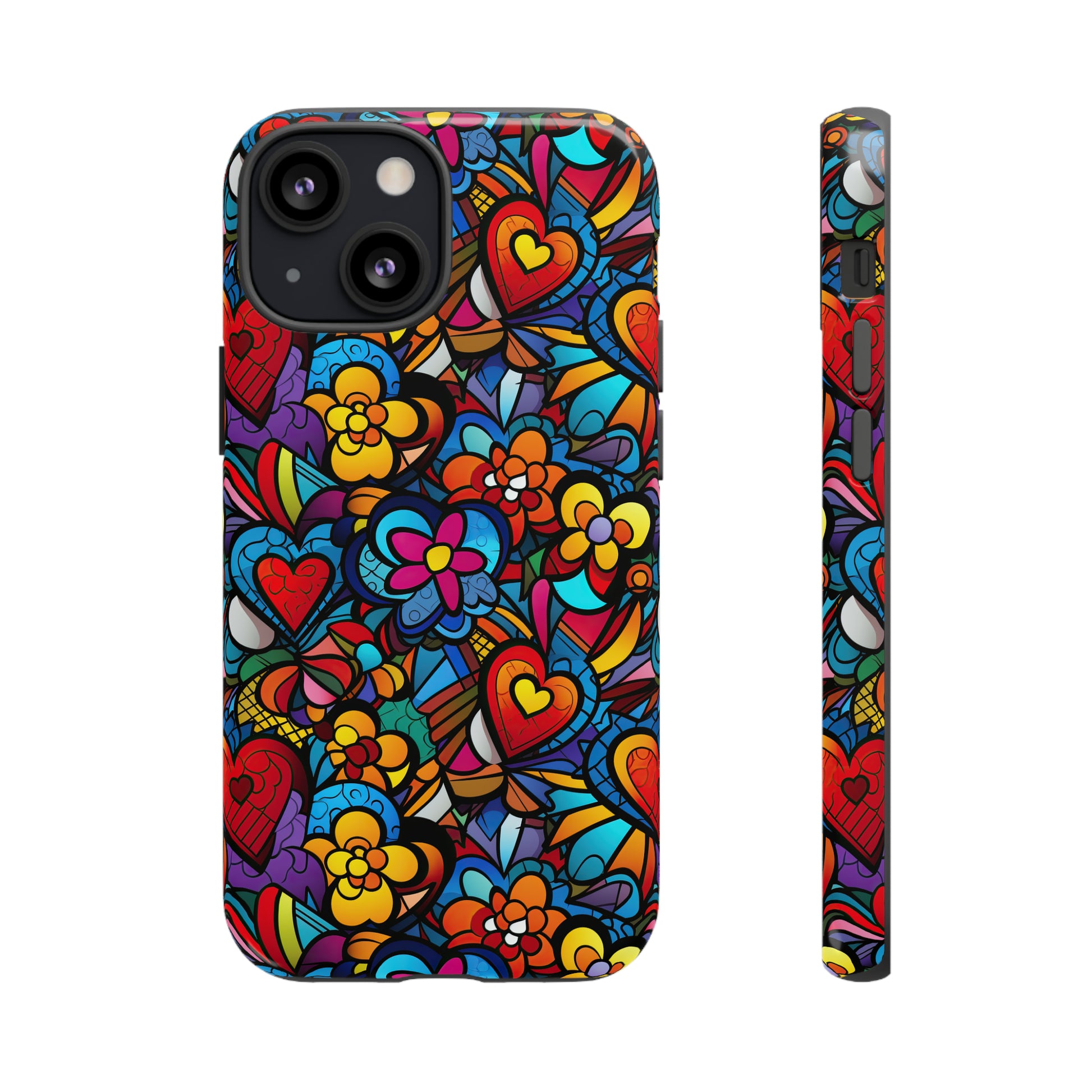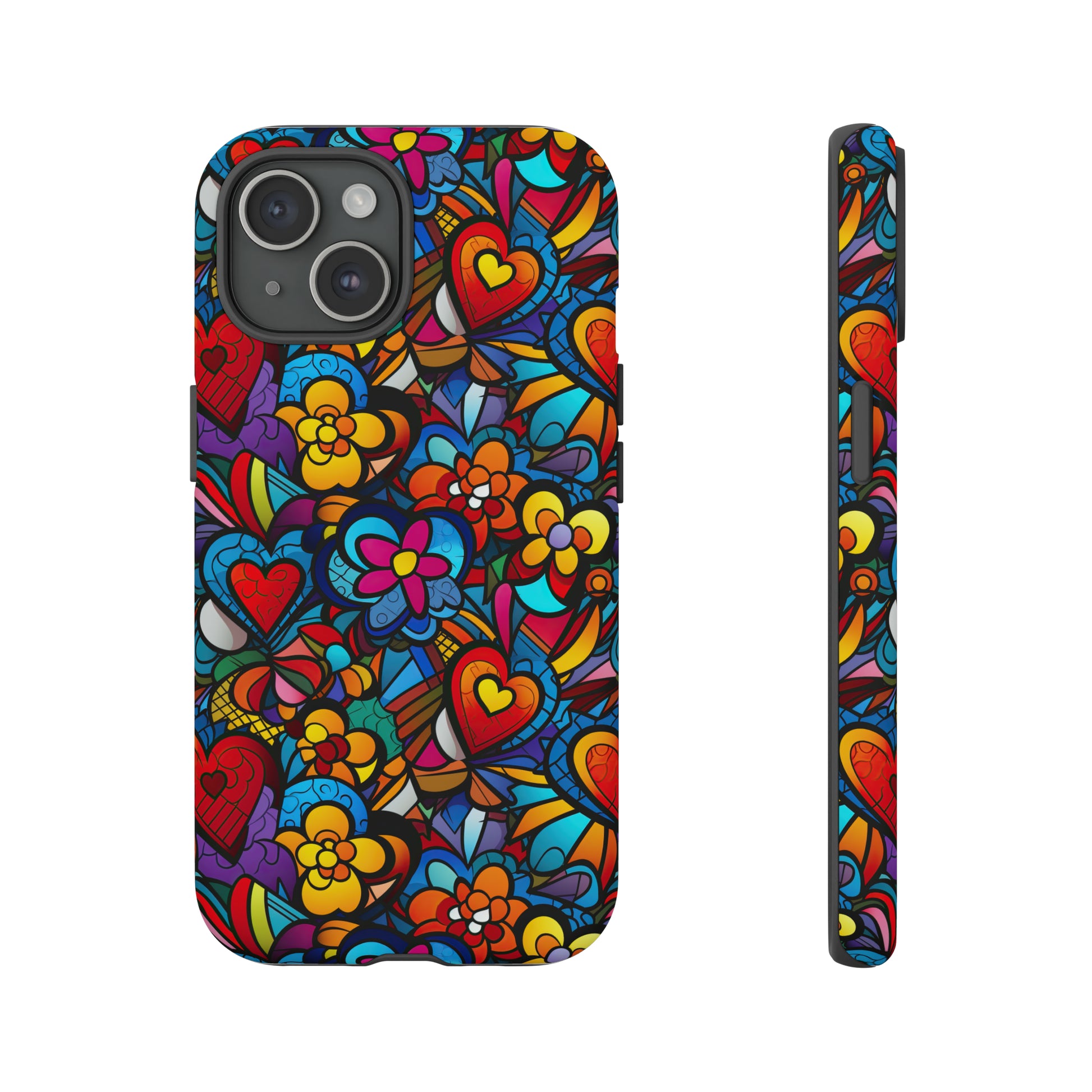 Protect & stylize your Apple iPhone, Samsung Galaxy, or Google Pixel devices with this premium-quality custom protective phone case in a colorful hearts & flowers design. Every case has double layers for extra durability and protection. The outer polycarbonate shell will resist daily impacts. Choose between a glossy or matte finish.