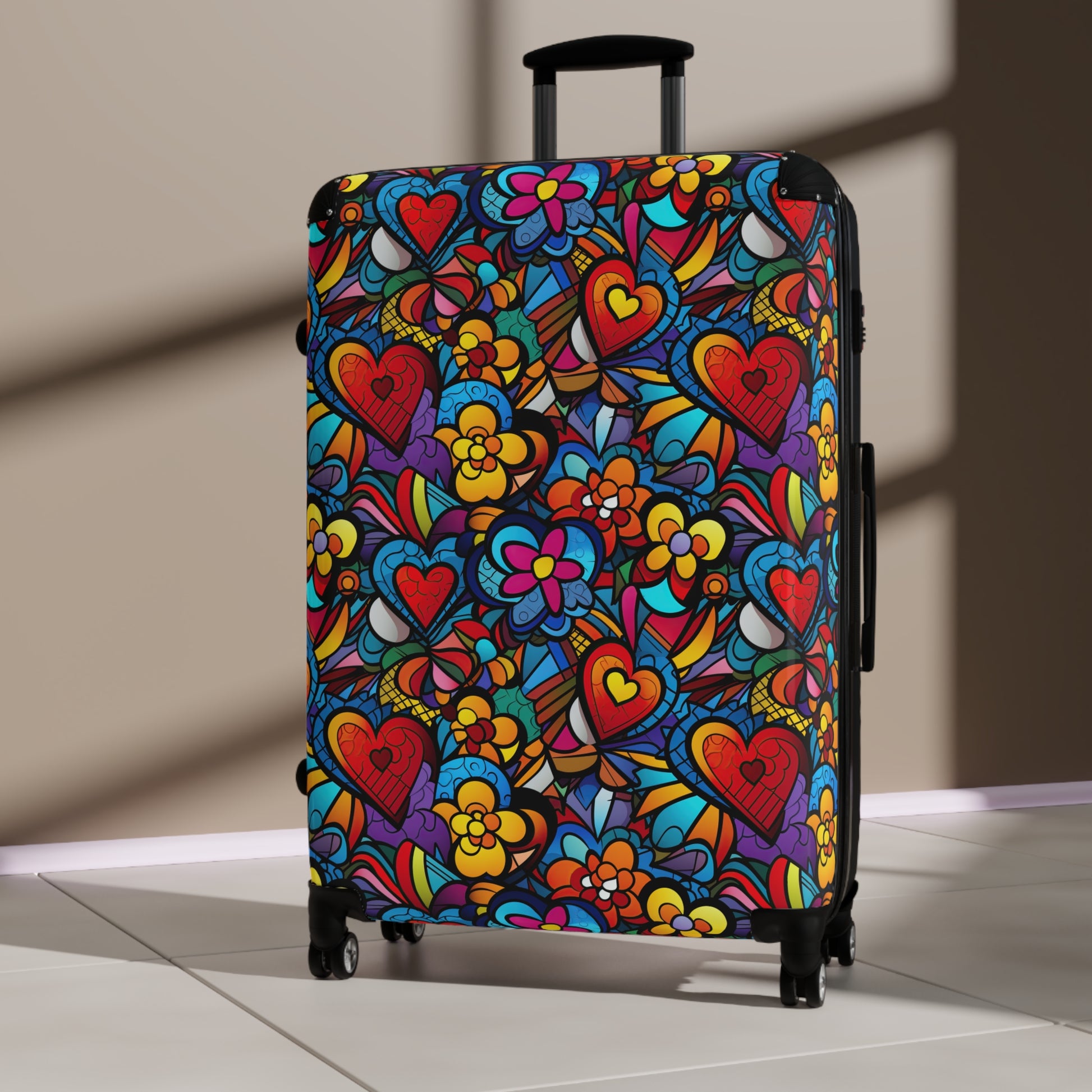 Traveling is best done in style, and the Hearts & Flowers Suitcase from Sunshine on the Seas is the perfect way to do it. Available in multiple sizes to accommodate your needs, this suitcase features an adjustable handle, 360 degree swivel wheels, a safety lock, and an adjustable handle for carefree movement through airports and cities.