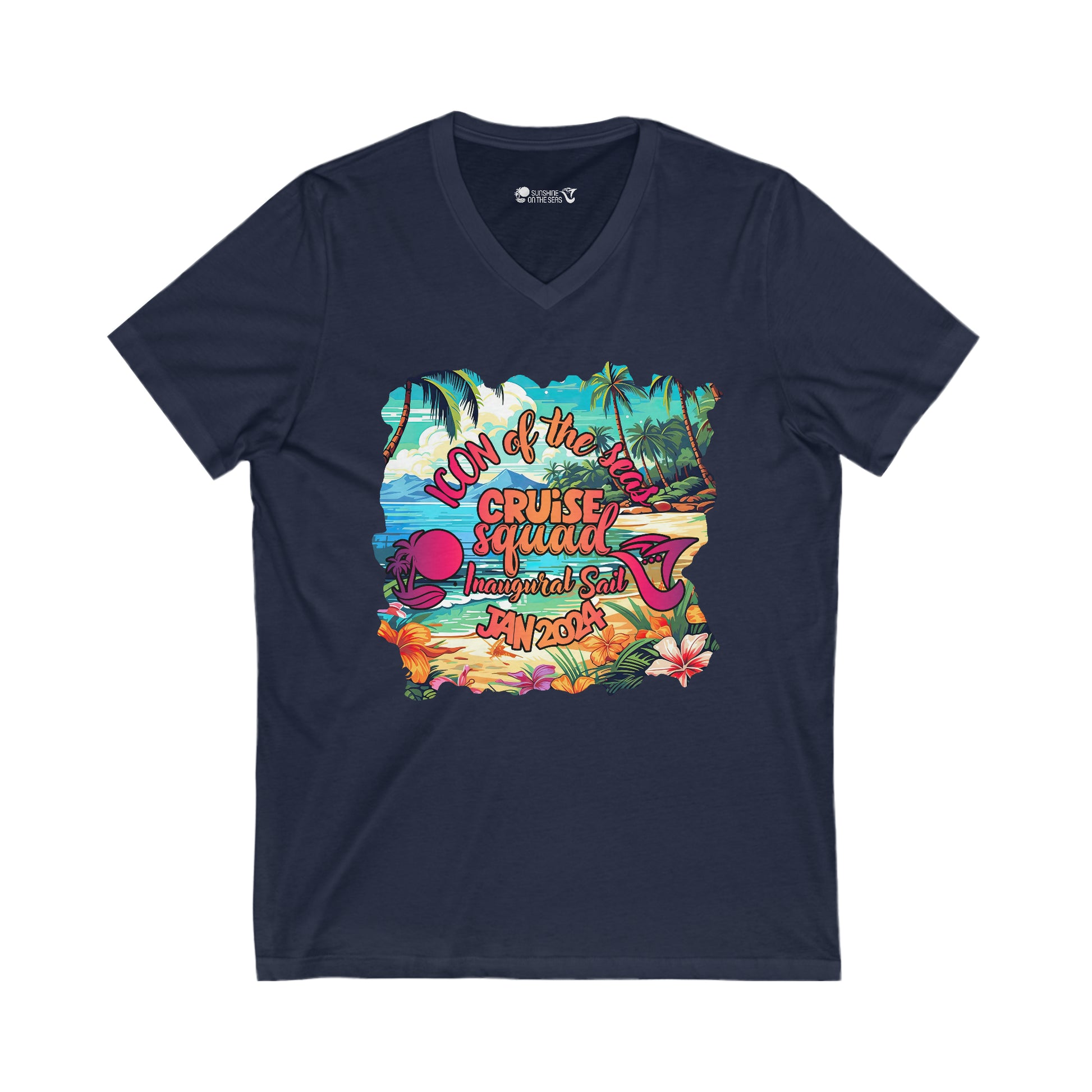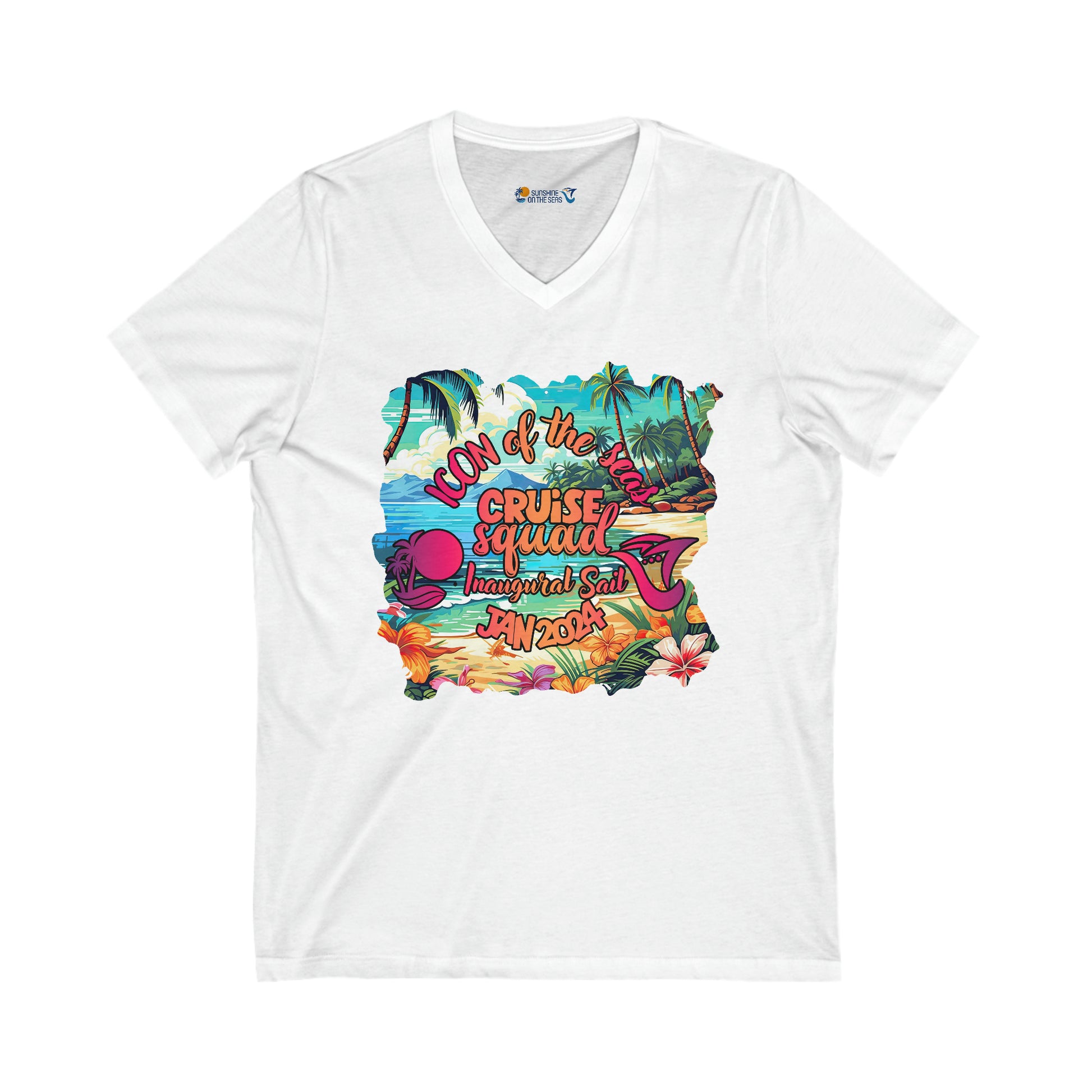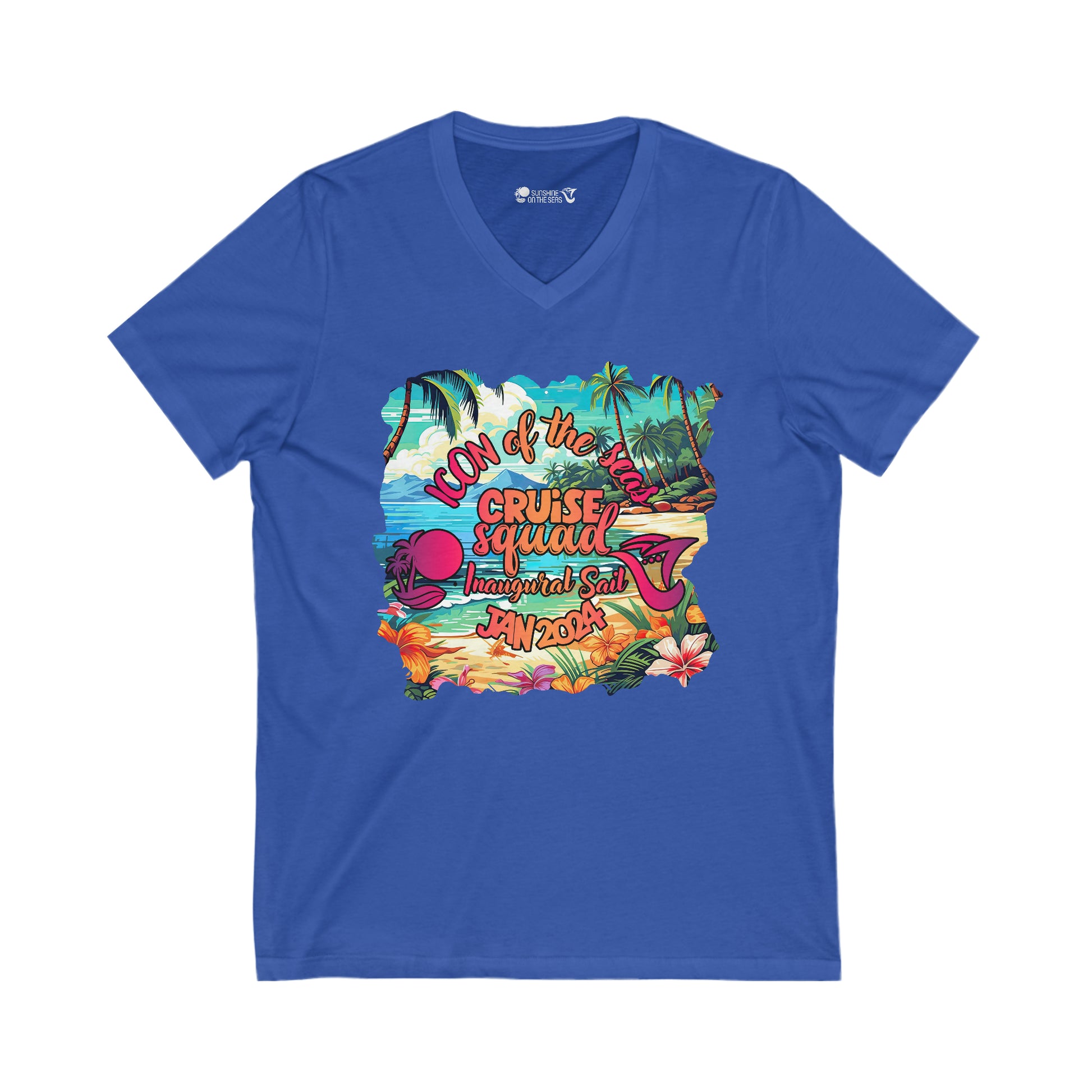 Icon of the Seas Cruise Squad Inaugural Sailing Jan 2024 Unisex Jersey Short Sleeve V-Neck Tee