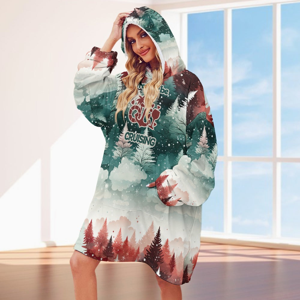 Crafted with meticulous attention to detail, our hooded blanket features a vibrant design that captures the essence of a holiday escape. The bold red and green trees, adorned with snowflakes, evoke a sense of festive cheer with a fun message on the pocket to remind you of warm days on a cruise ship. Made from premium quality materials, this blanket is incredibly soft to the touch, providing unparalleled comfort during those chilly winter nights. The hooded design ensures maximum warmth, enveloping you in a cocoon of coziness, while the generous size allows for complete coverage, making it perfect for snuggling up with your loved ones.