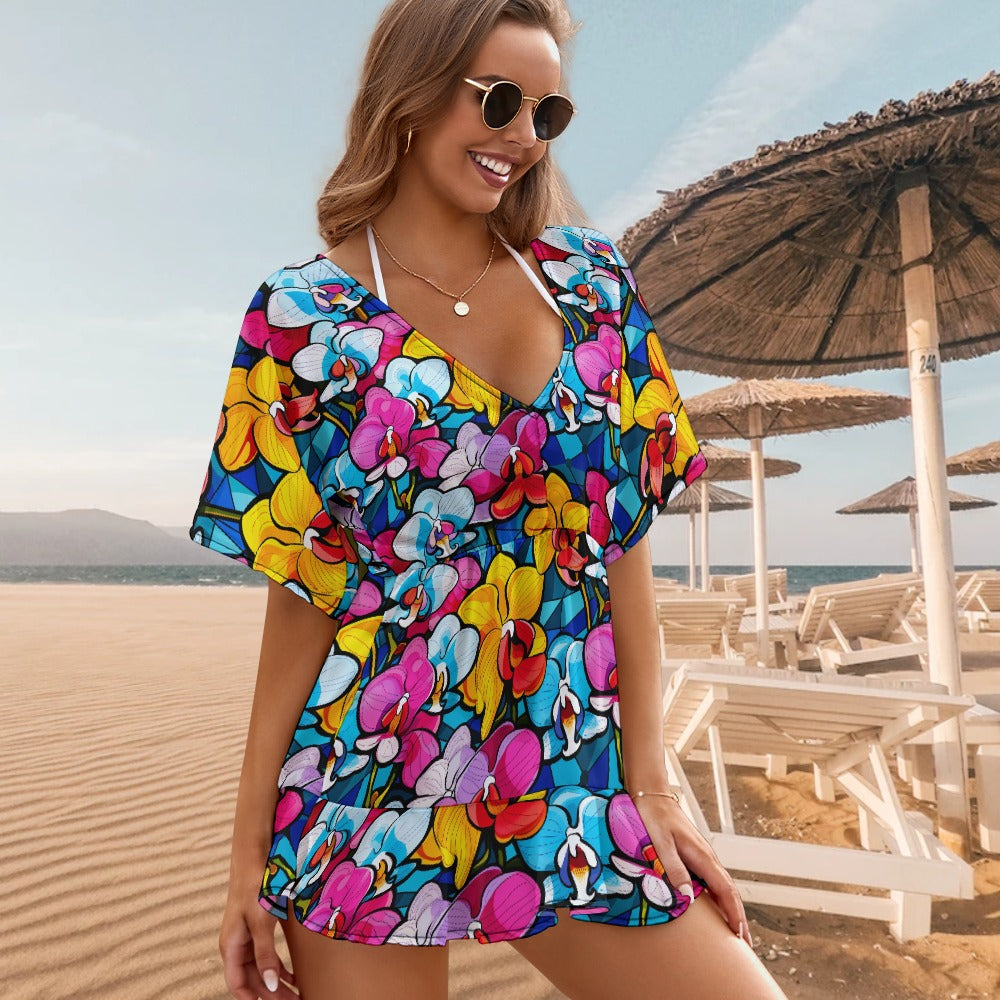 PREMIUM FABRIC: This one-piece smock dress is made of chiffon fabric, which has good breathability and drape, and is flowy and comfortable to wear. Fashionable Design: This women's one-piece cover-up dress has a V-neck design and a fishtail skirt, wearing it will make you look charming and sexy, flattering your figure, and trendy. Easy to put on and take off, this sexy women's cover-up dress shows you the special, beautiful, best and necessary cover-up to add joy to your wonderful vacation. VERSATILE DESIGN: This cute and sexy women's cover-up dress is used as a beach blouse and sun shirt, it is perfect for bikinis and has a cinched waist.