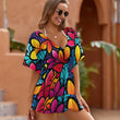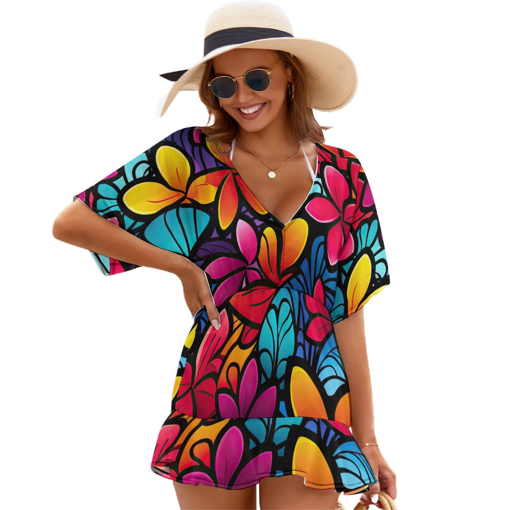 PREMIUM FABRIC: This one-piece smock dress is made of chiffon fabric, which has good breathability and drape, and is flowy and comfortable to wear. Fashionable Design: This women's one-piece cover-up dress has a V-neck design and a fishtail skirt, wearing it will make you look charming and sexy, flattering your figure, and trendy. Easy to put on and take off, this sexy women's cover-up dress shows you the special, beautiful, best and necessary cover-up to add joy to your wonderful vacation. VERSATILE DESIGN: This cute and sexy women's cover-up dress is used as a beach blouse and sun shirt, it is perfect for bikinis and has a cinched waist.