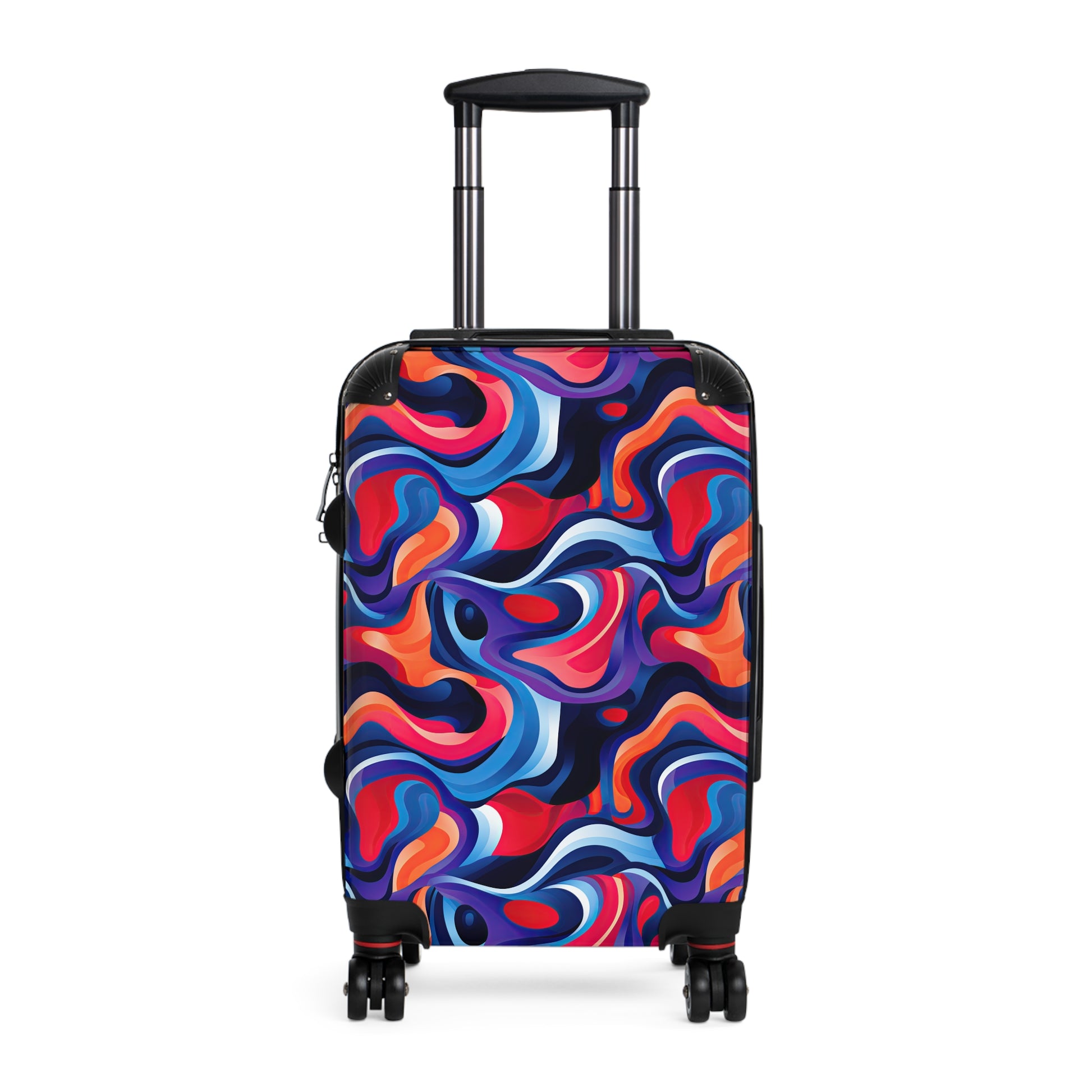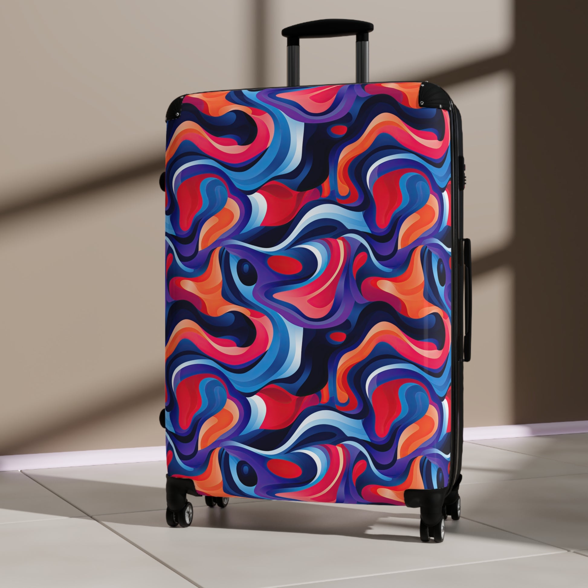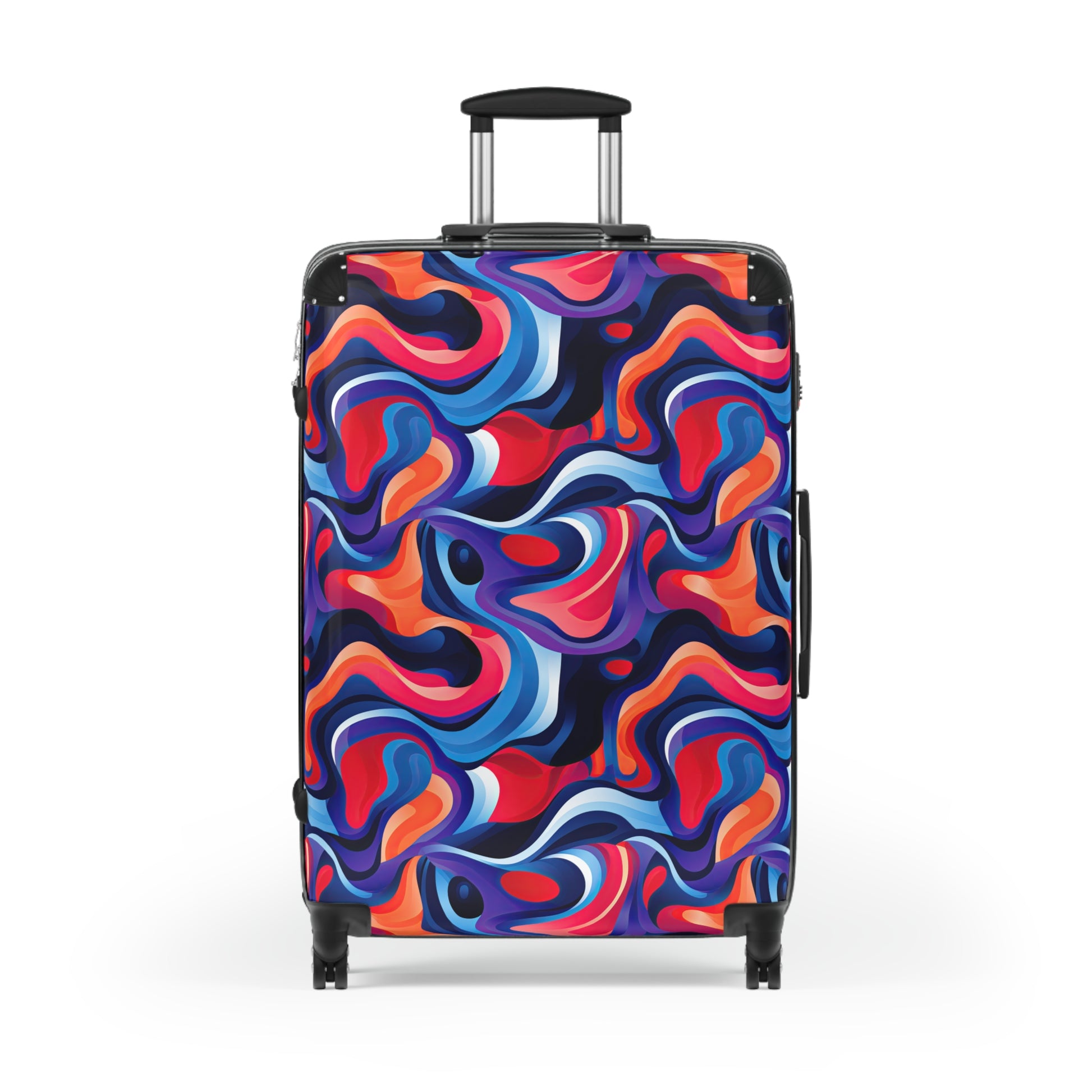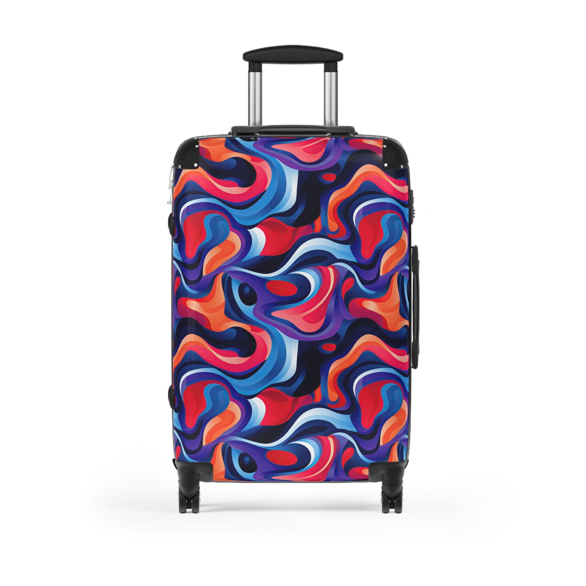 The bright and colorful swirl design will ensure you can easily find your luggage and stand out while on travel or vacation. The suitcase is made of polycarbonate front and ABS back hard-shell, with an adjustable telescopic handle, removable inner lining under a black rubber seal, two inner pockets, and four double-wheels with 360° swivel. It also has a built-in lock for added security.