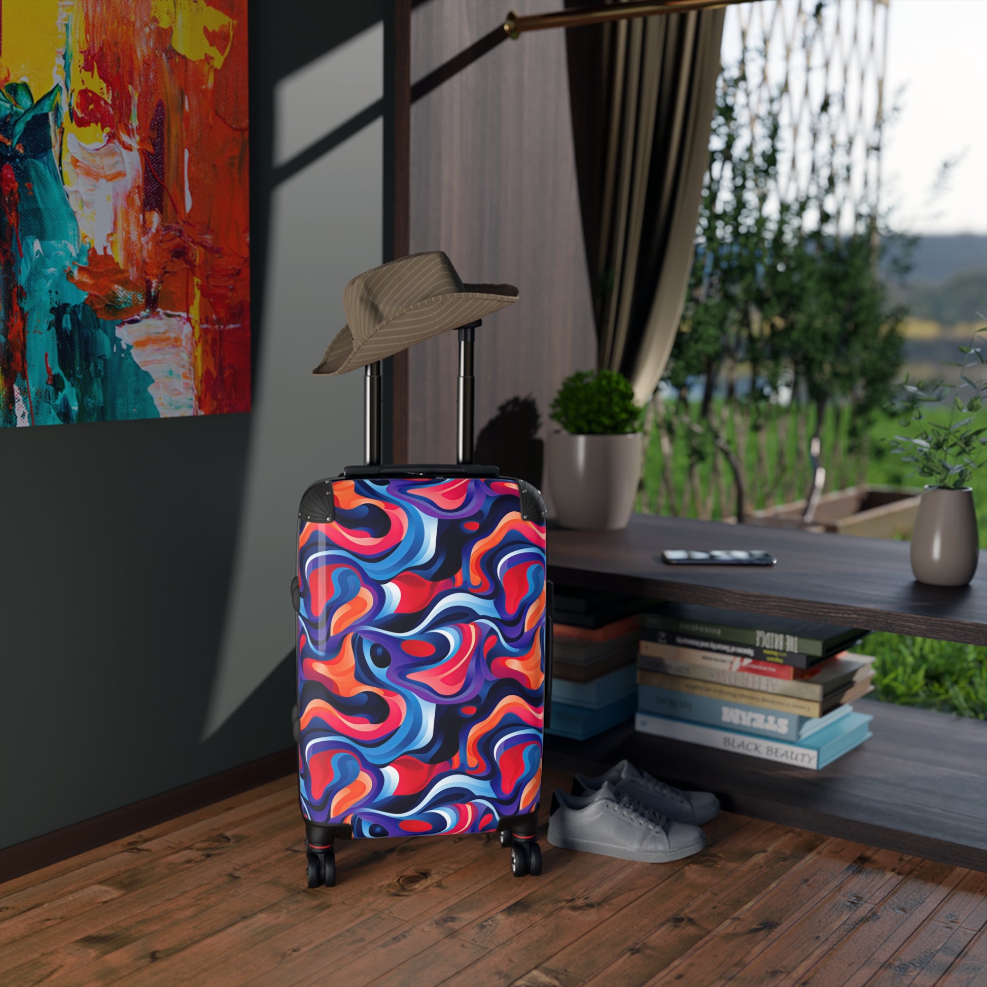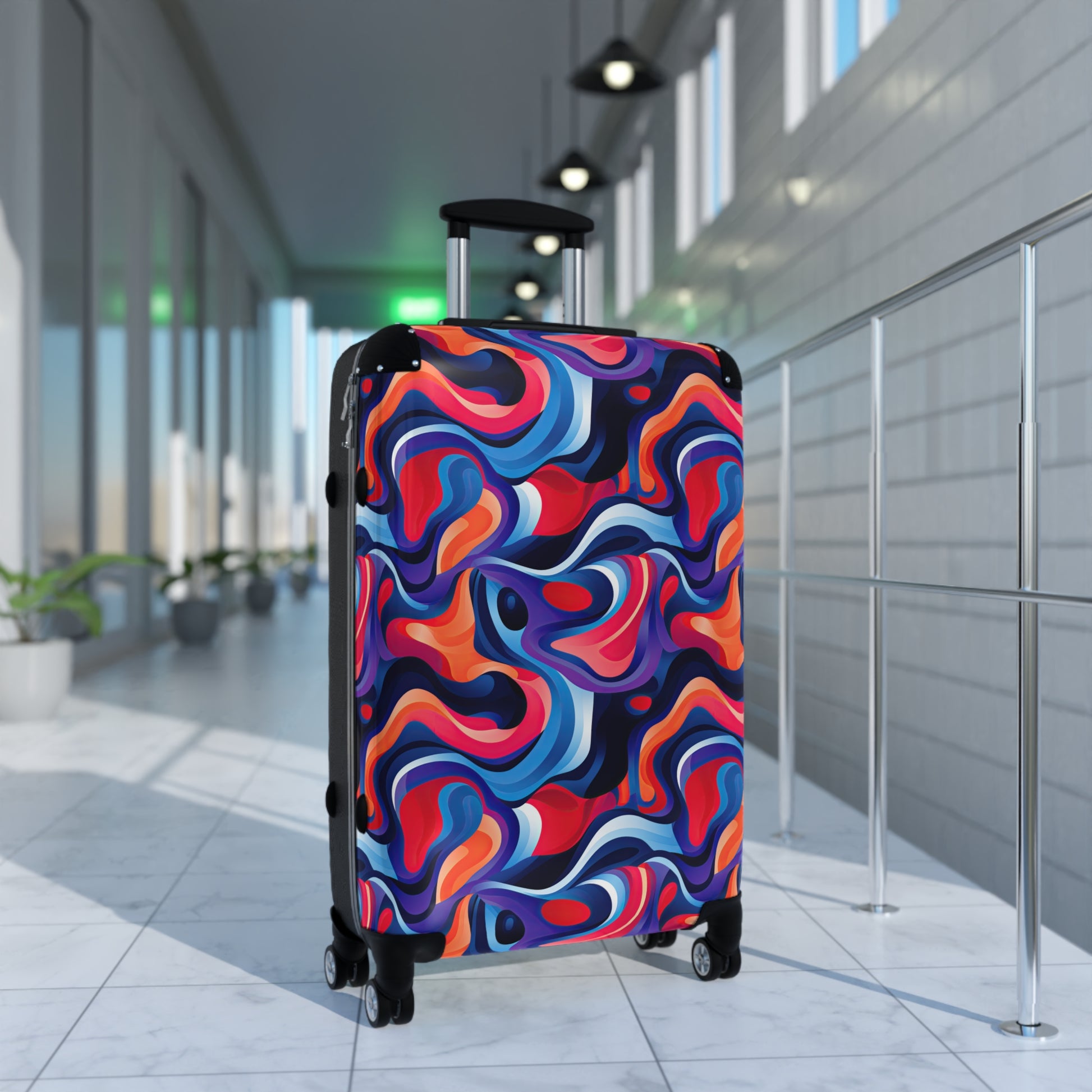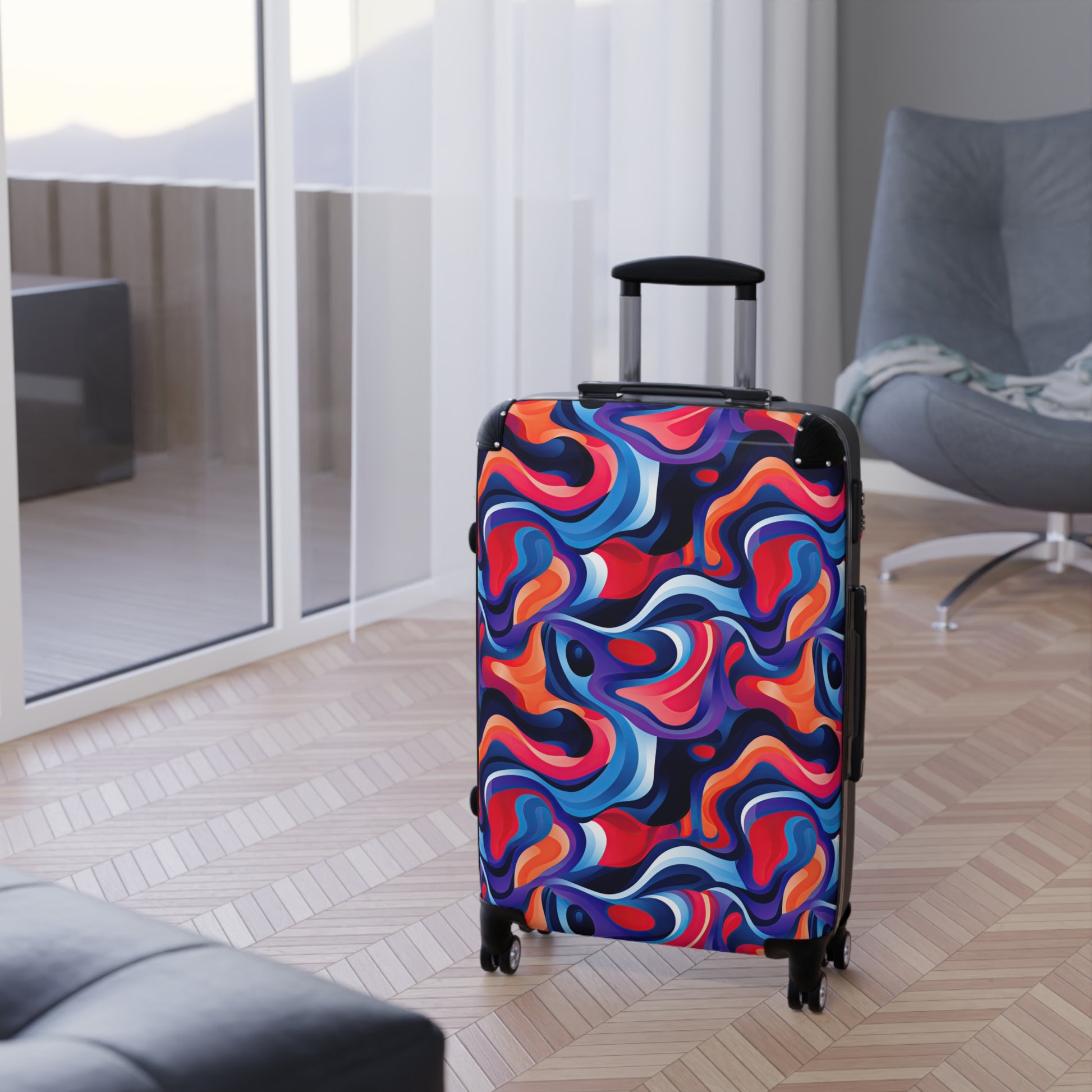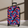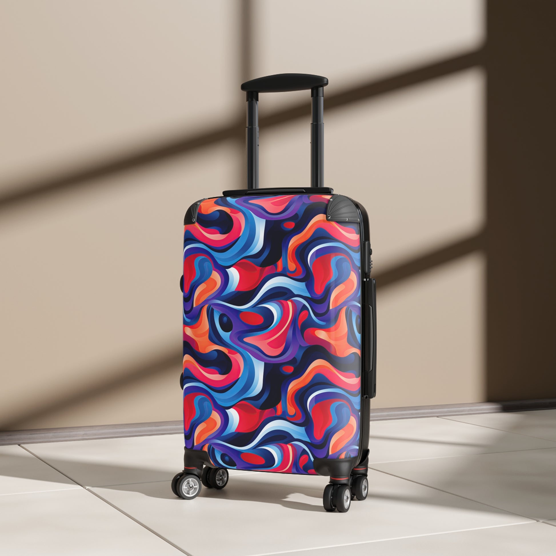 The bright and colorful swirl design will ensure you can easily find your luggage and stand out while on travel or vacation. The suitcase is made of polycarbonate front and ABS back hard-shell, with an adjustable telescopic handle, removable inner lining under a black rubber seal, two inner pockets, and four double-wheels with 360° swivel. It also has a built-in lock for added security.
