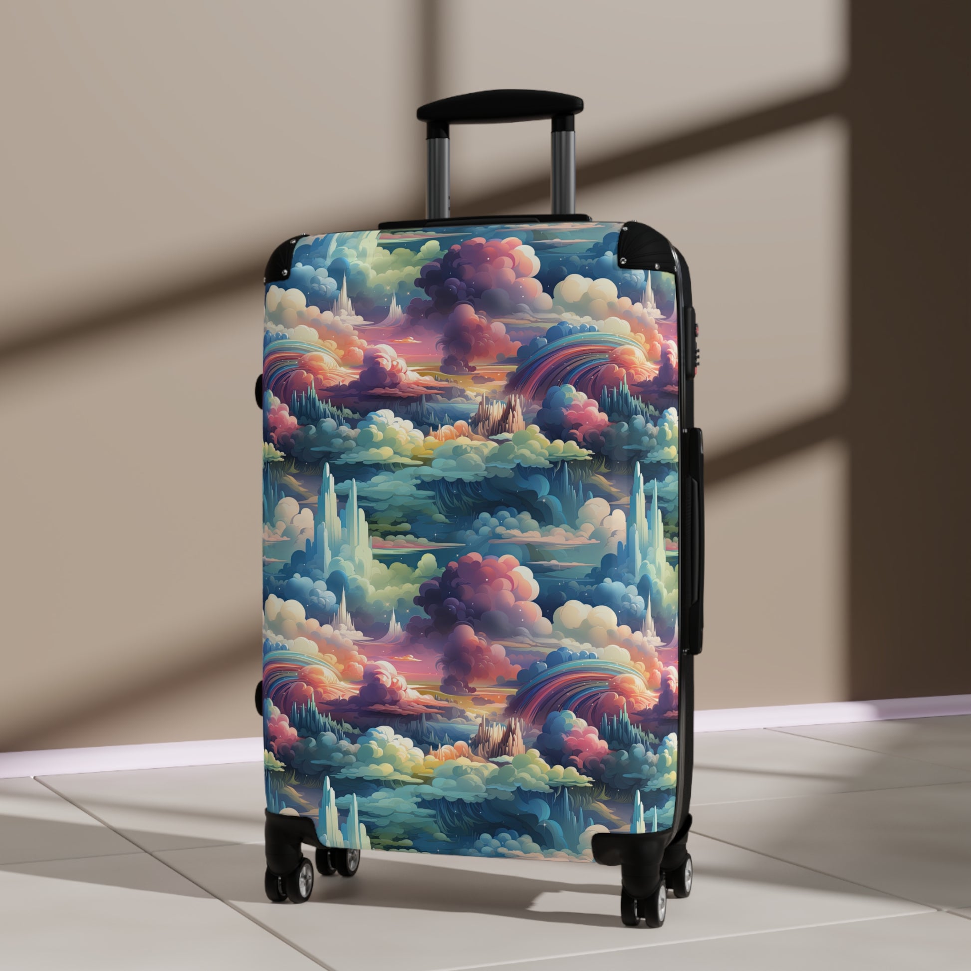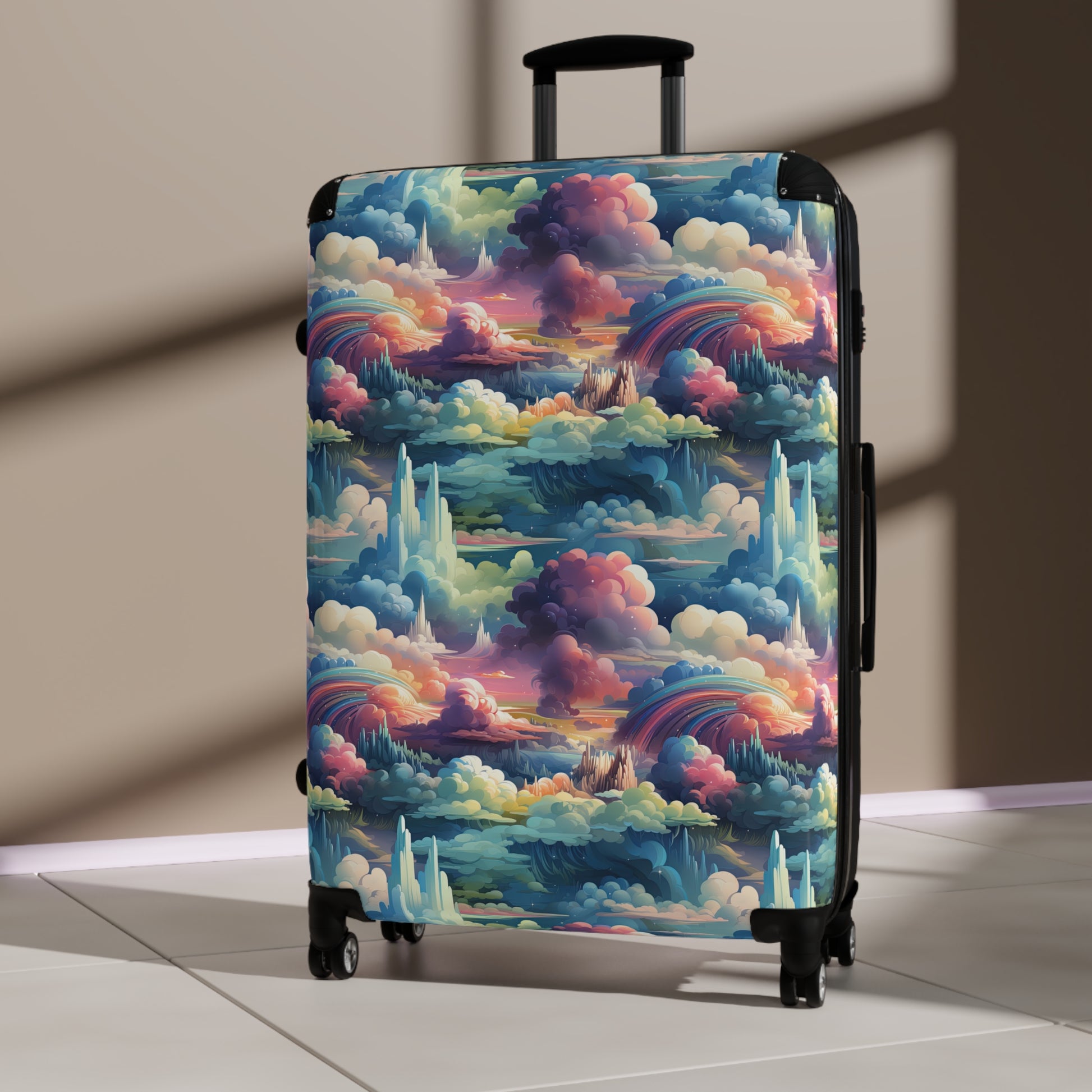 Traveling is best done in style, and suitcases help anyone do exactly that. The Mystical Rainbow Suitcase is available in multiple sizes to accommodate your needs, and comes with an adjustable handle, 360 degree swivel wheels, a safety lock, and an adjustable handle for carefree movement through airports and cities.