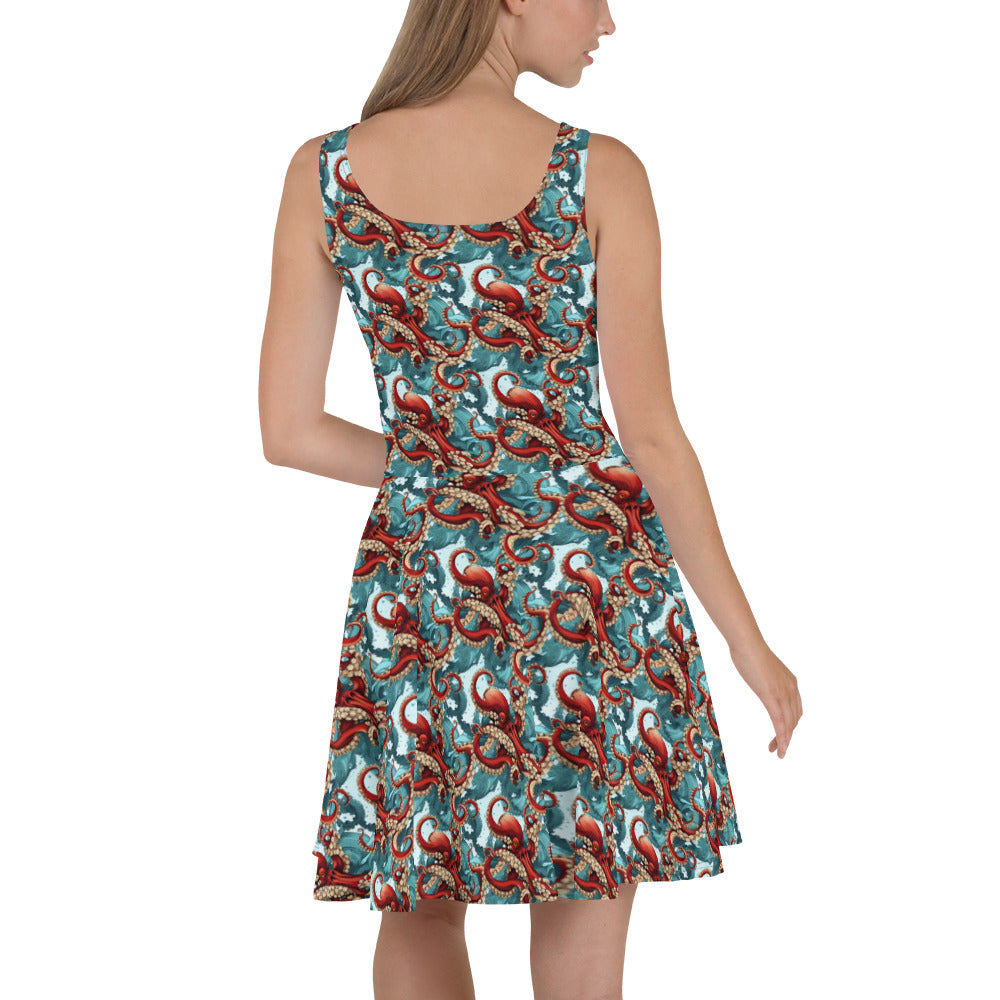 Watch out for this cute, colorful sleeveless skater dress! I spy Octopus eyes! The soft fabric and flared skirt give it an elegant twist that brings out the intricate design with a beautiful vibrancy.