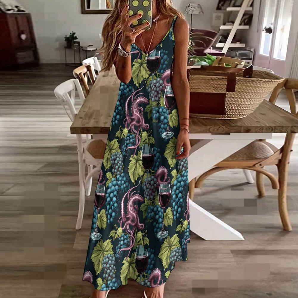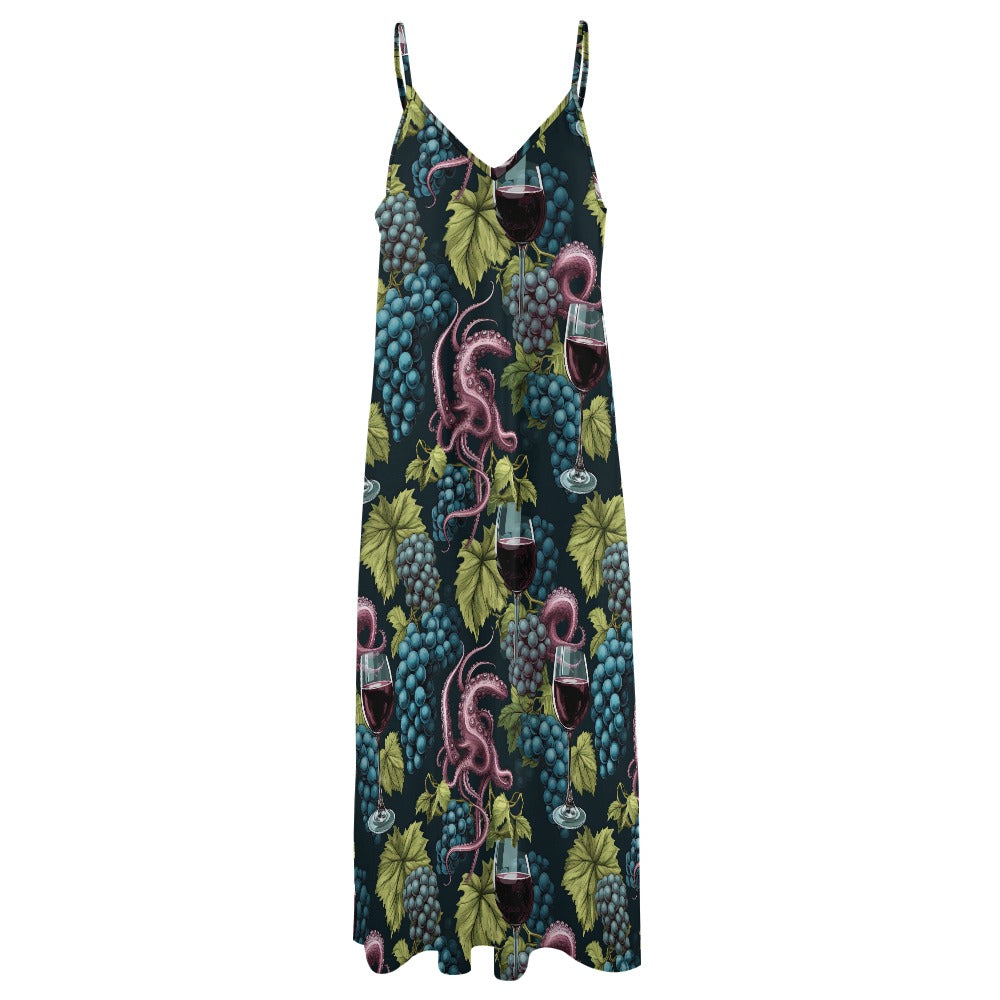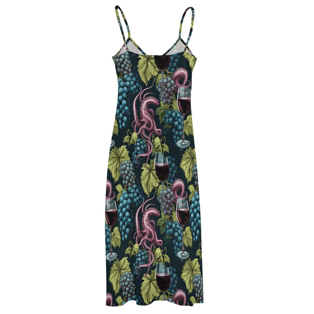 Octopus Tentacles & Wine Sling Ankle Long Dress