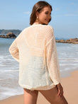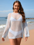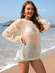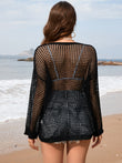 Openwork Dropped Shoulder Long Sleeve Cover-Up
