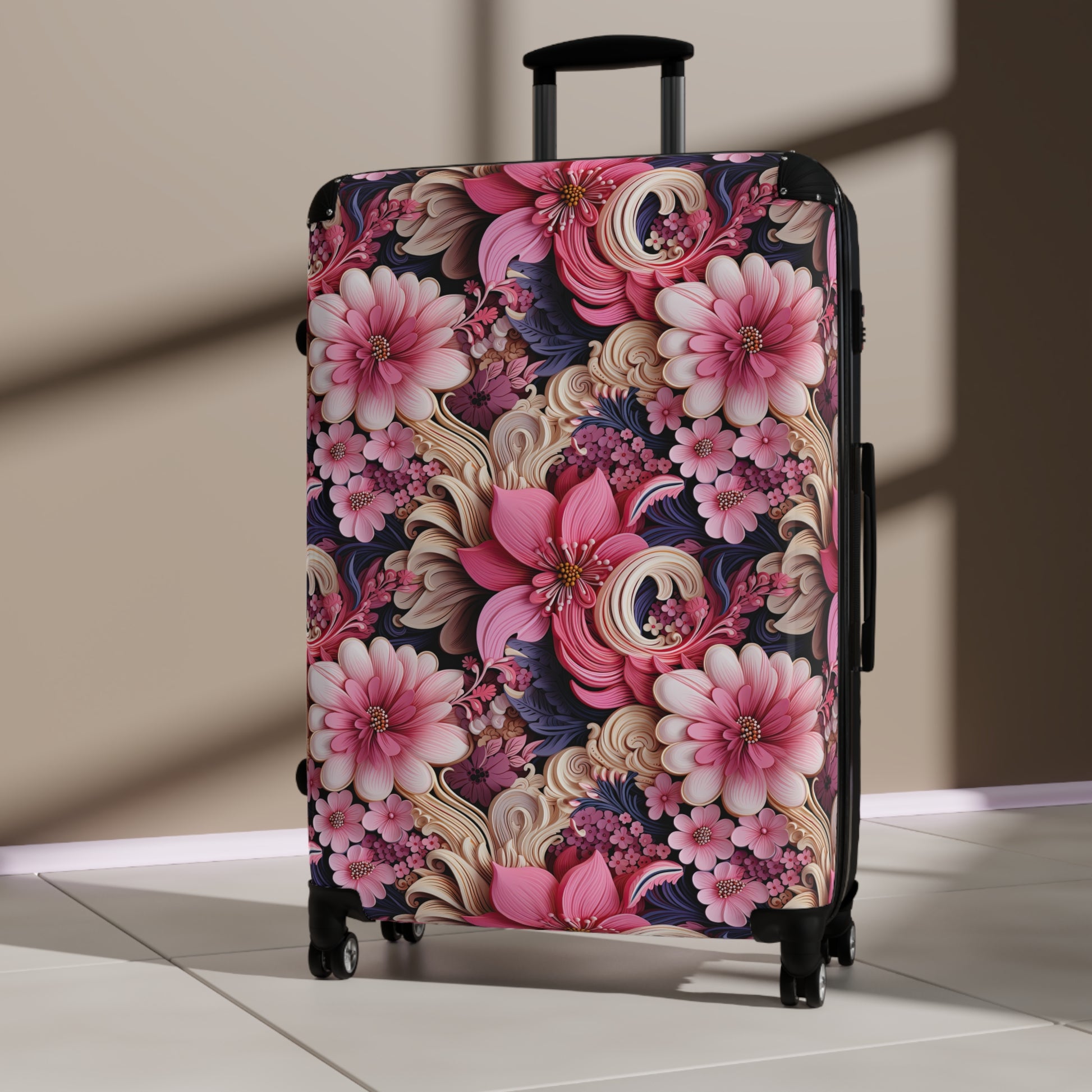 Traveling is best done in style, and suitcases help anyone do exactly that. This unique, pink paisley design will ensure you can easily find your luggage and stand out while on travel or vacation. Available in multiple sizes to accommodate your needs, the Pink Paisley Suitcase comes with an adjustable handle, 360 degree swivel wheels, a safety lock, and an adjustable handle for carefree movement through airports and cities.