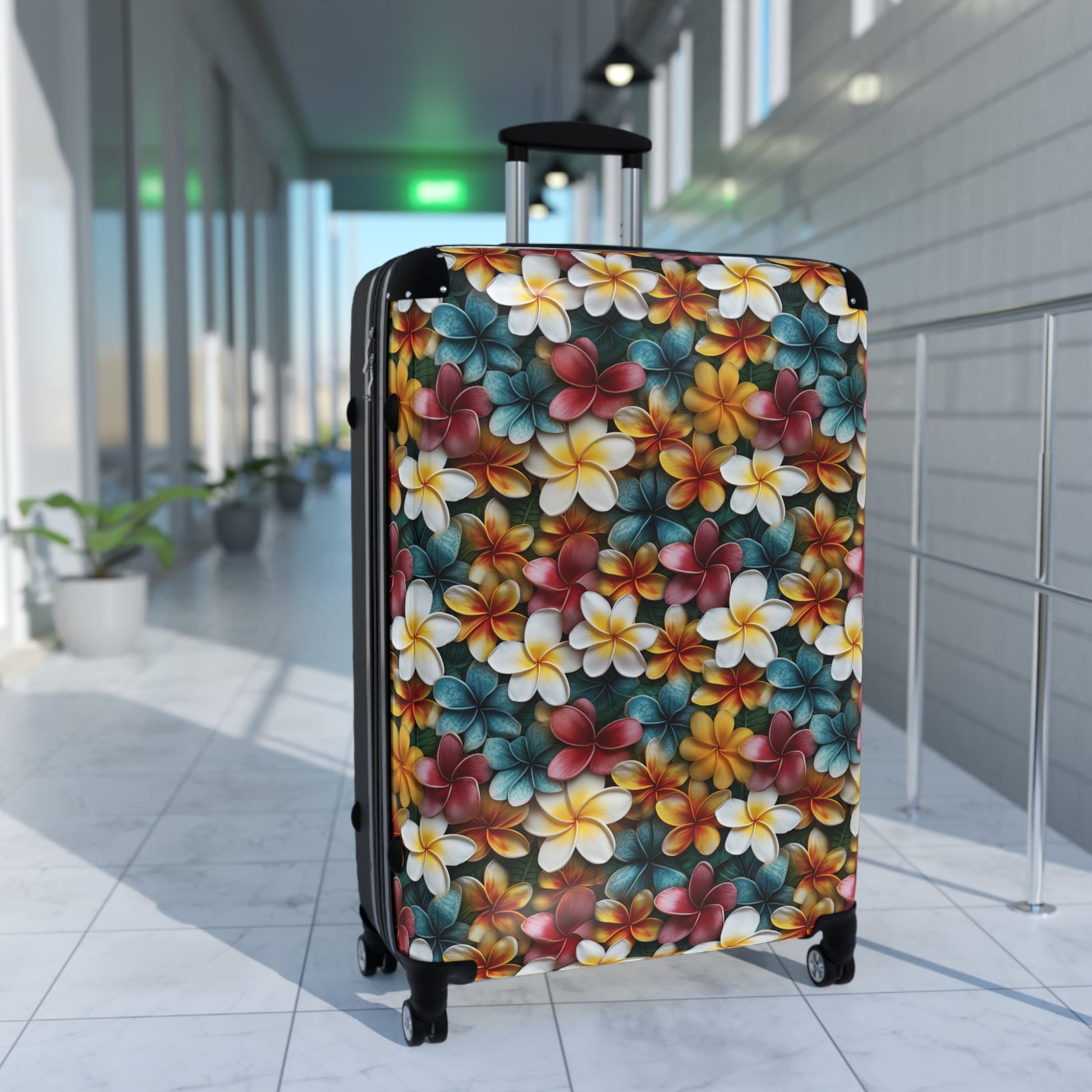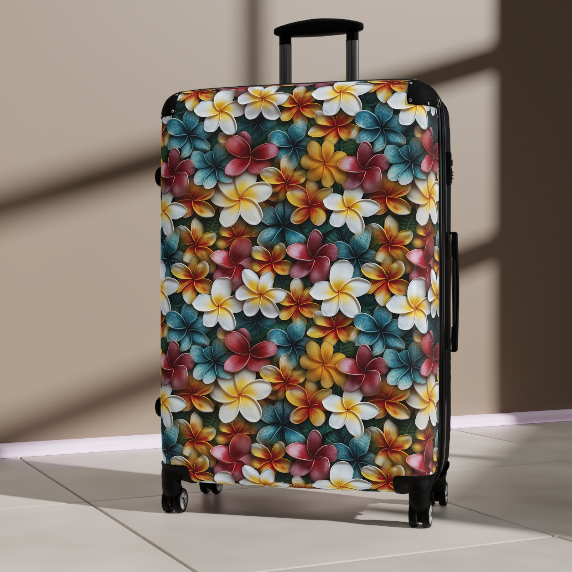 Make your next trip stylish and secure with the Plumeria Suitcase from Sunshine on the Seas.