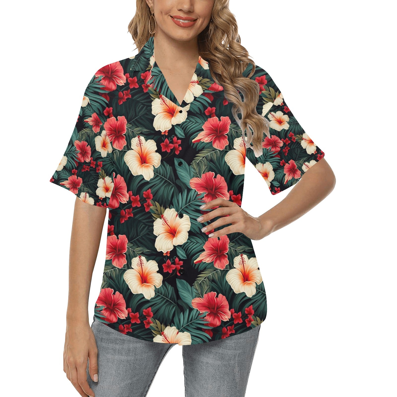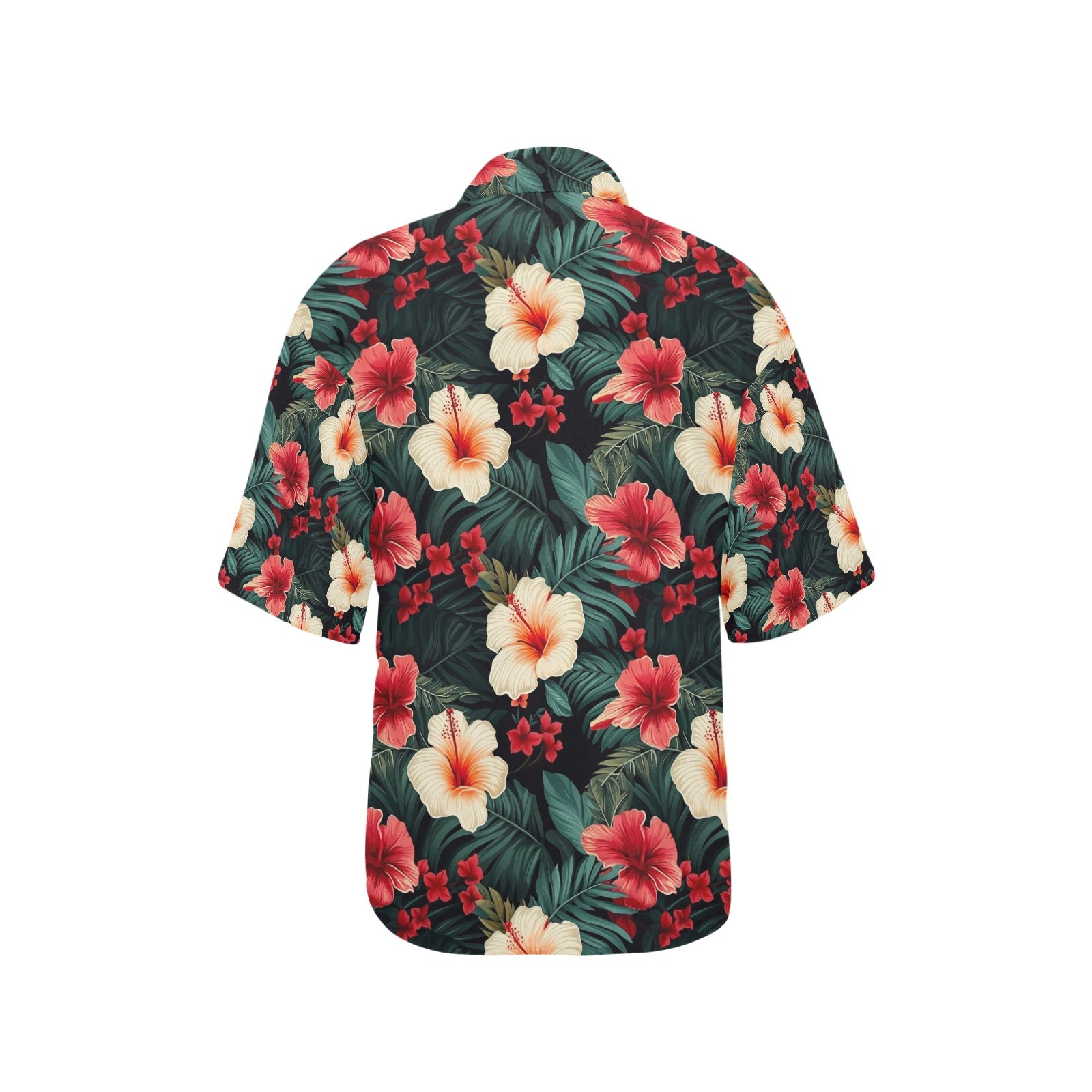 Red & White Hibiscus Hawaiian Shirt for Women