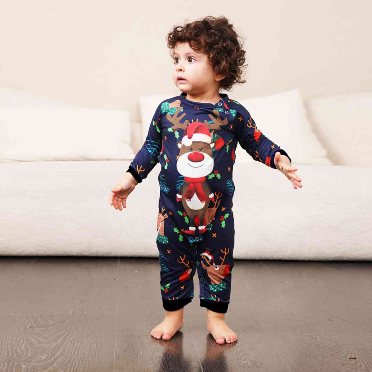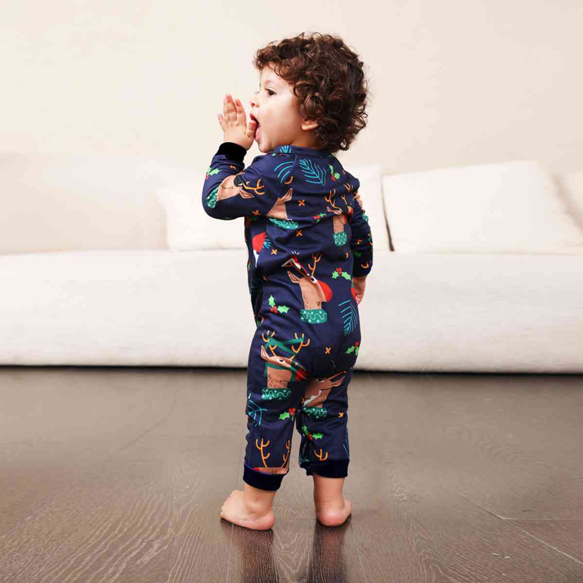 Introducing our adorable reindeer print hooded jumpsuit, the perfect holiday gift for your loved ones! Get ready to spread the Christmas cheer with this cozy and stylish sleepwear. Made with love and attention to detail, this jumpsuit features a cute reindeer print that will make you feel like you're part of Santa's team. The hood adds an extra touch of warmth and cuteness, making it perfect for those chilly winter nights. Whether you're lounging around the house or attending a festive gathering, our matching sleepwear is sure to make you the star of the show. So why wait? Treat yourself or surprise your family and friends with this delightful holiday present. Get ready to snuggle up and make unforgettable memories in our reindeer print hooded jumpsuit!