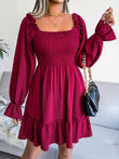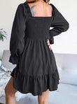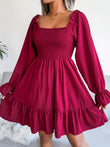 Smocked Flounce Sleeve Square Neck Dress