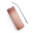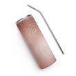 Enjoy hot or cold drinks on the go with this stylish stainless steel tumbler! This rose-gold glitter reusable tumbler with a metal straw is a perfect combo for hot or cold drinks at any time of the day.