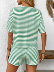 Striped Round Neck Short Sleeve Top and Shorts Set