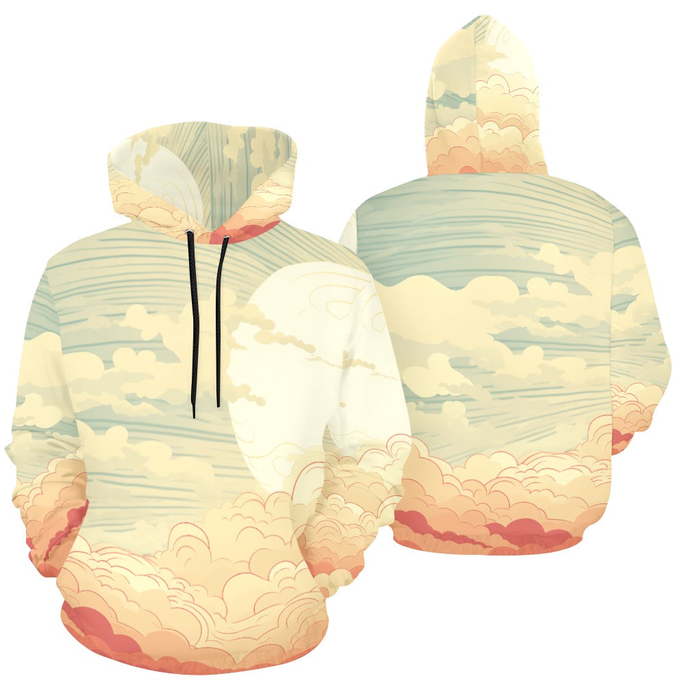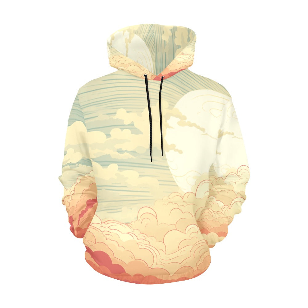 Introducing the Sunny Delight Women's Hoodie that will bring a ray of sunshine to your everyday look. This fashionable garment features a yellow and orange hoodie, adorned with a captivating design of sun rays and clouds. Stay cozy, stylish, and ready to conquer the day with this radiant piece.