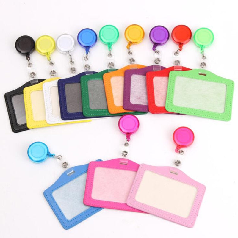 Women Men Cruise Retractable Badge Reel ID Card Holder Cover Case Nurse Badge Lanyards Fashion PU Leather Card Holders Set